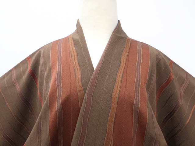 リサイクル商品ではございますが、大変良い状態のお品です。 地色は 、茶色です。 1枚目の画像が近いお色かと思われます。 素材は正絹です。 |