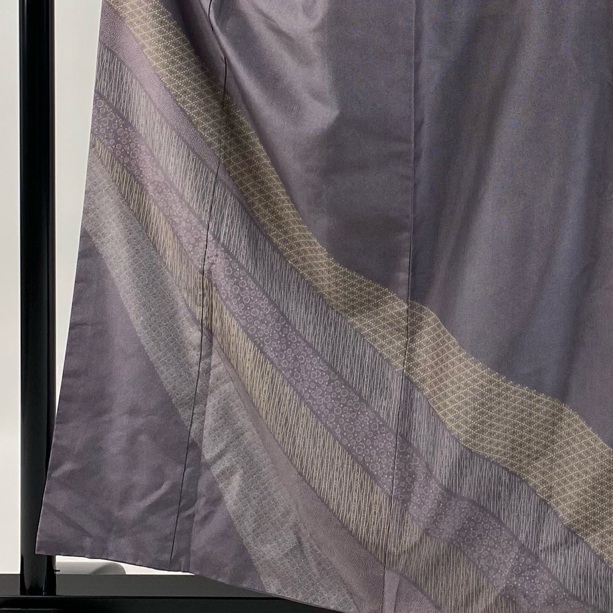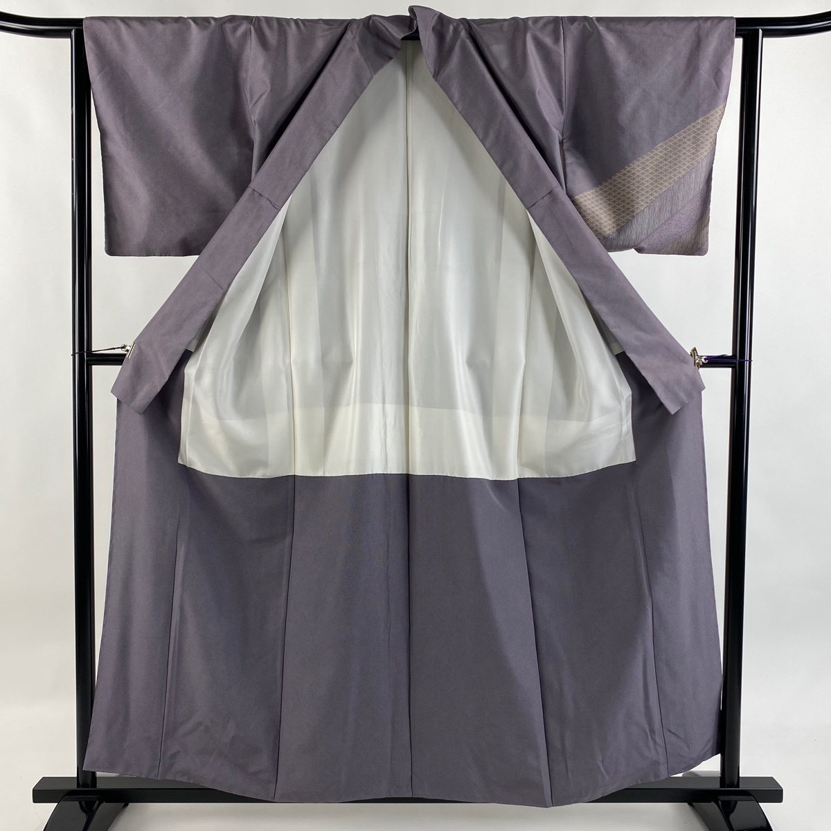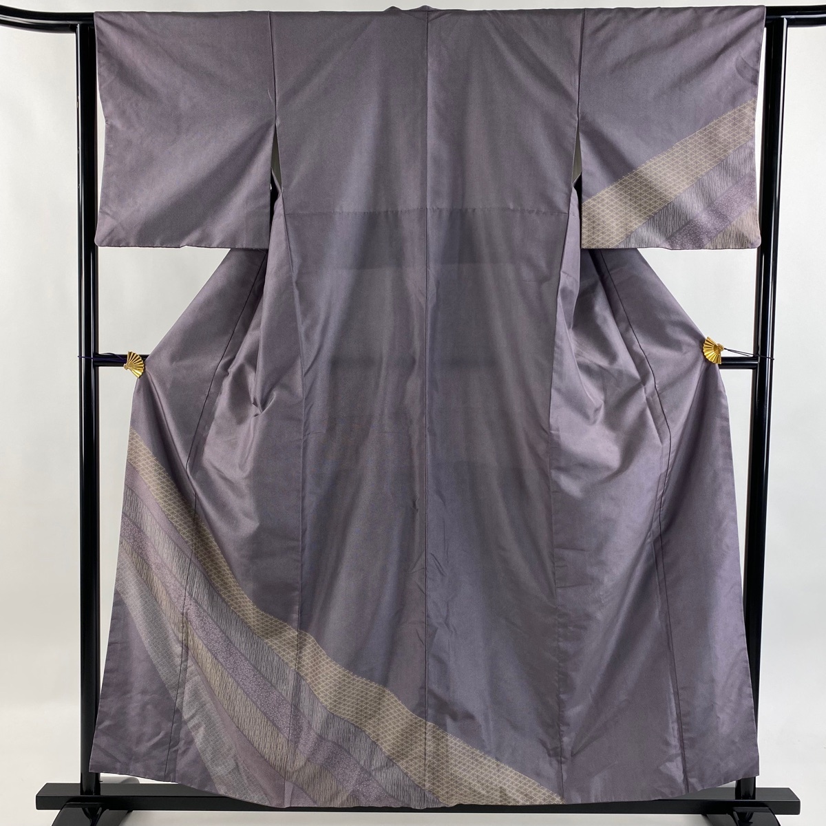 | 付下げ 秀品 紬地 菱 鮫 紫 袷 身丈158 裄丈62 S 正絹 【中古】 |
