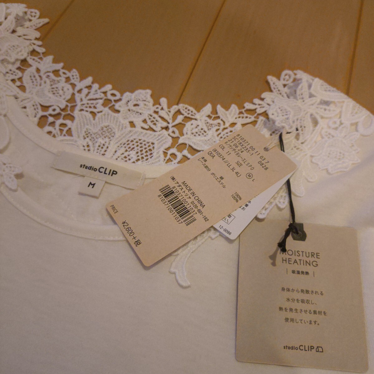 新品スタジオクリップ機能素材バックレースプルオーバーホワイトです。自宅保管のため細かな点気になる方はご遠慮ください。
