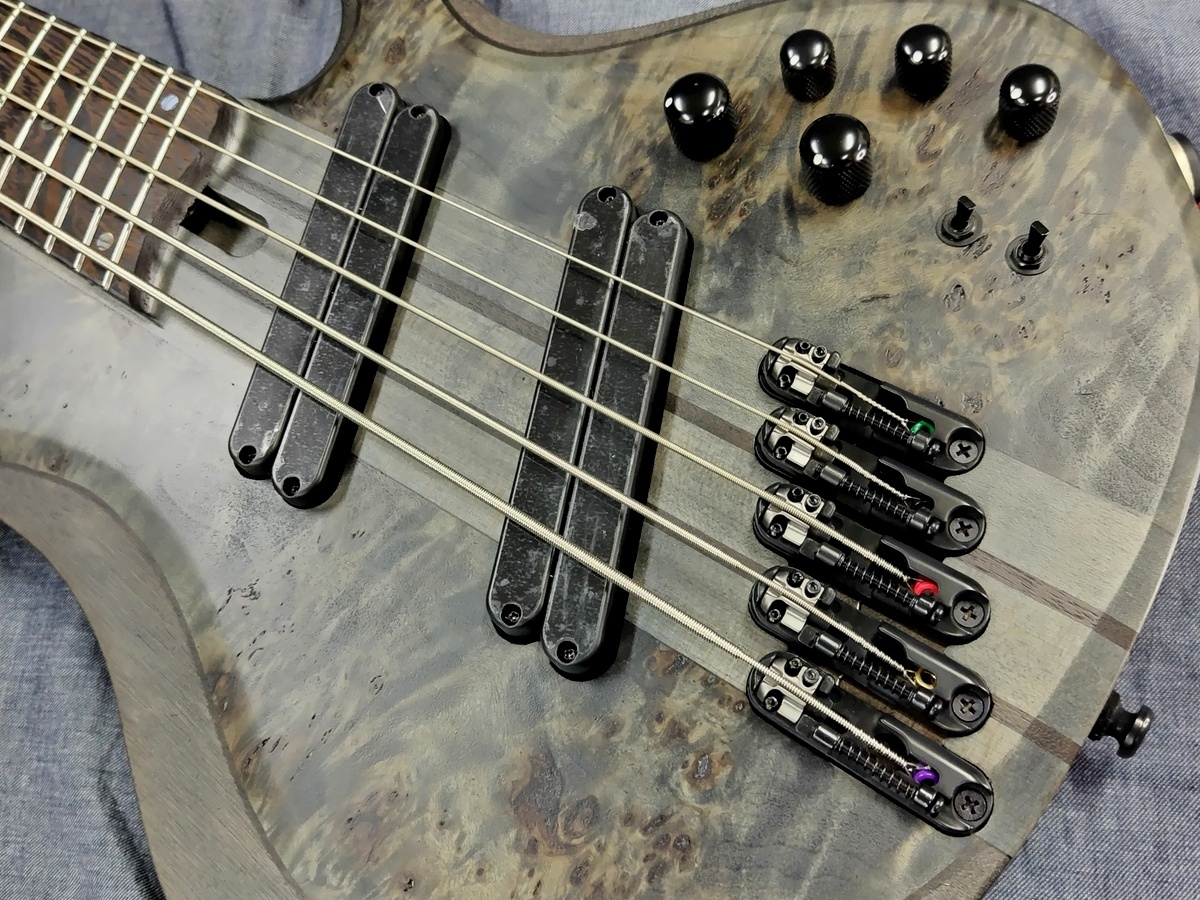 Low-B弦(5弦)のスケールを37”に設定することにより低音弦側では通常モデルBTBよりも強めのテンション感を得られ、チューン・ダウンした際の音の明瞭さと芯のあるサウンドに威力を発揮します。Ibanezベースでは最も極端に扇状となるマルチ・スケールで、特に高フレット域におけるテクニカルな運指に利点が多い仕様です。