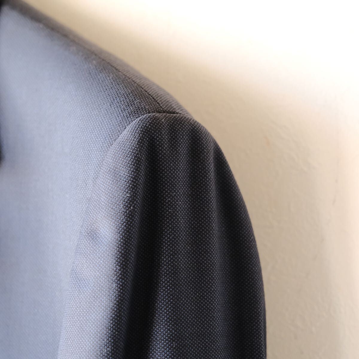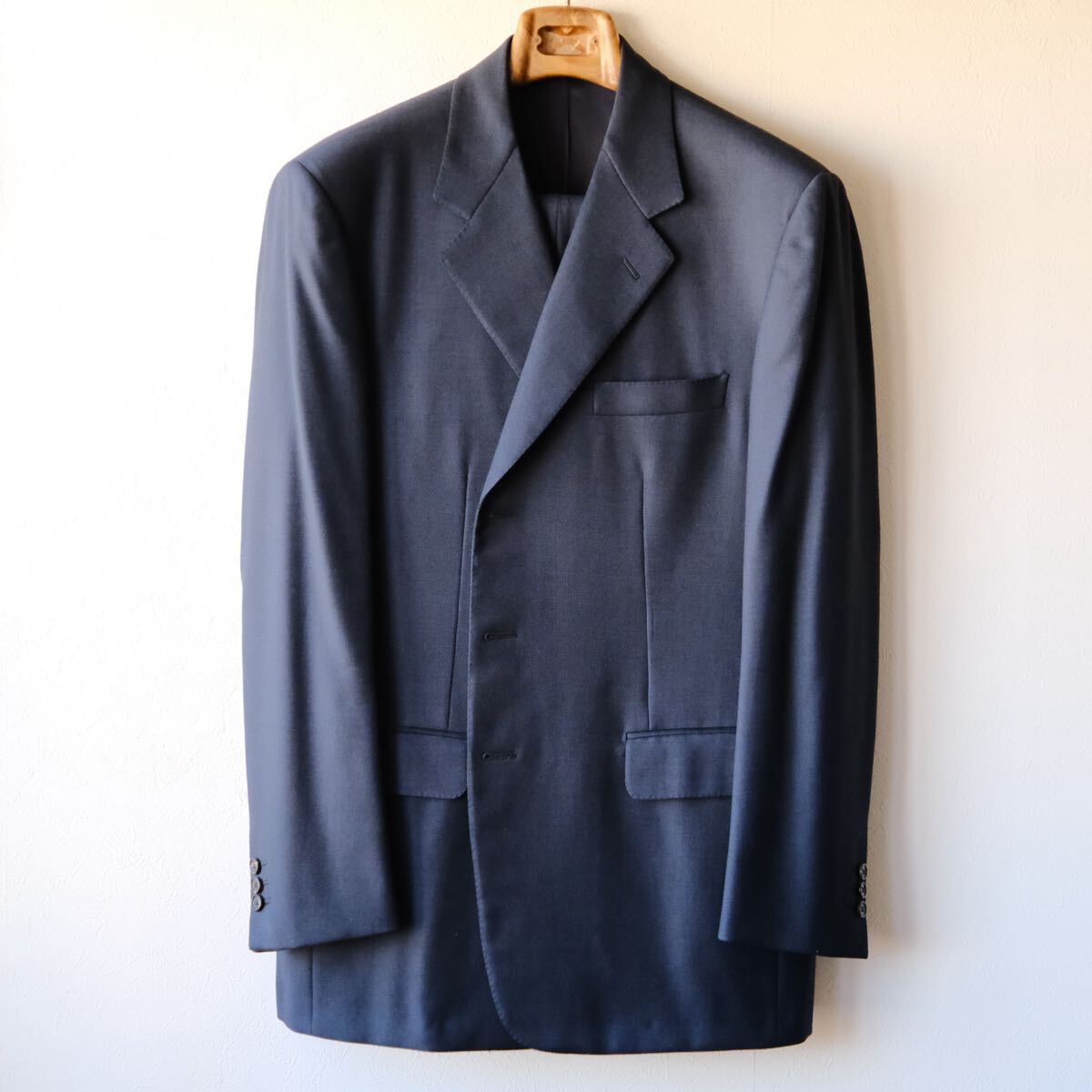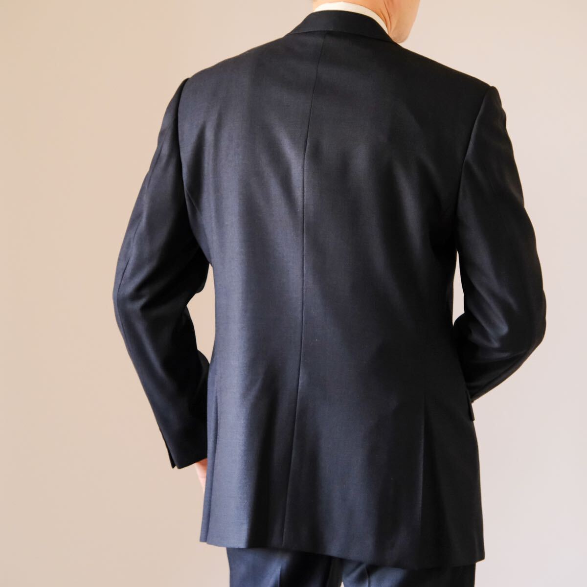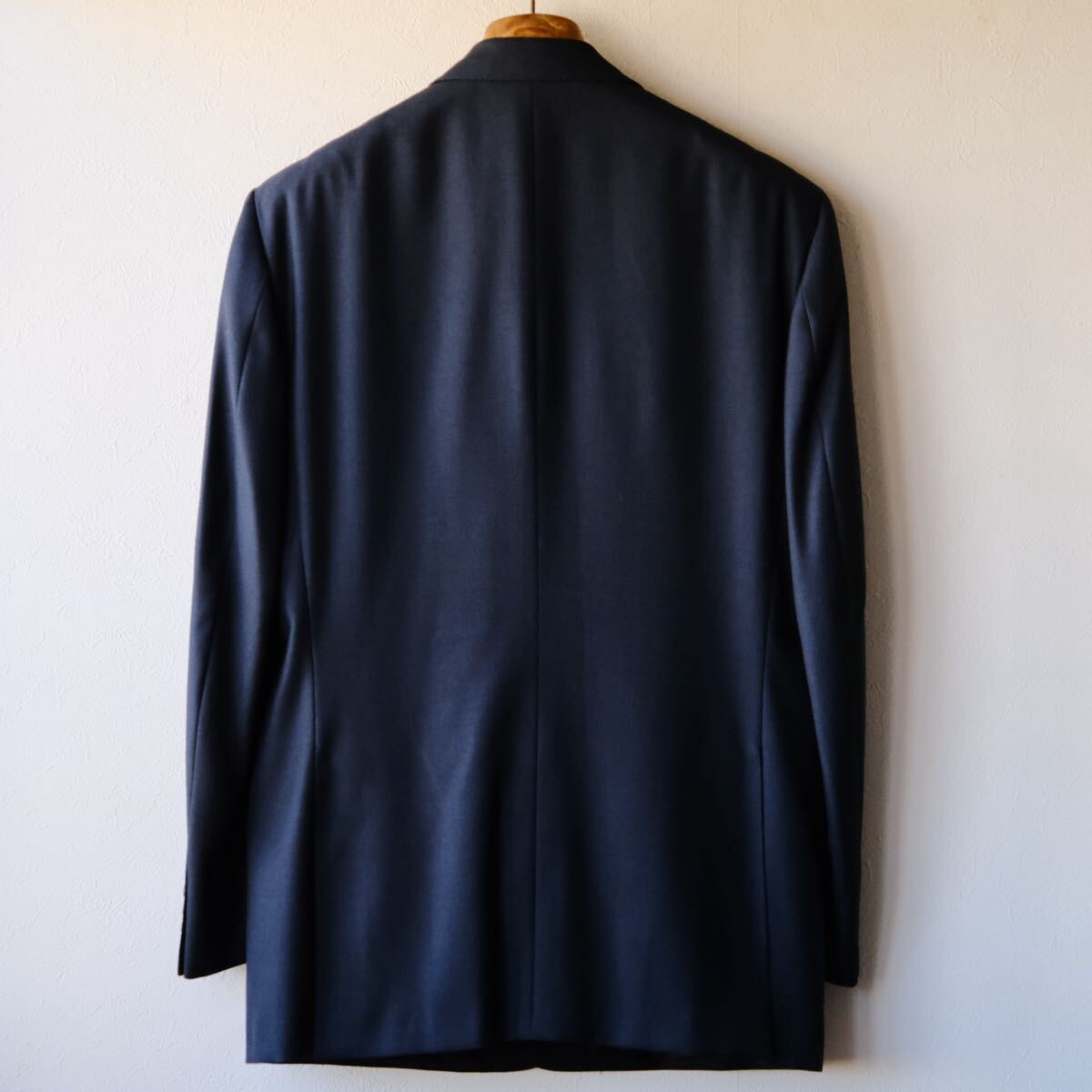 フロントシングル3ボタン、フロントポケット3つ、内ポケット4つ、総裏仕立て、サイドベンツ、袖アキミセ3ボタン