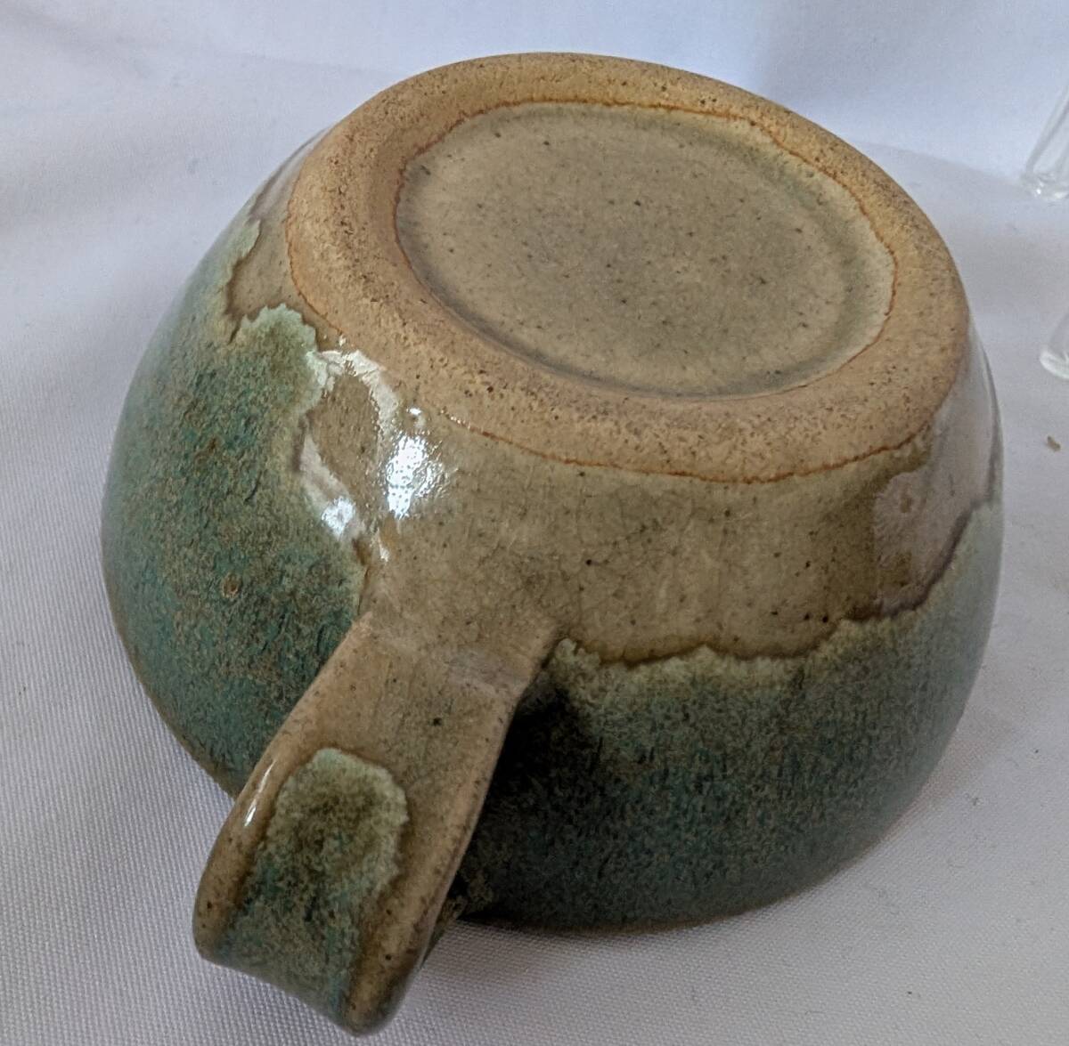スープカップ  陶器  とんすい  *手付スープカップ  益子焼???緑