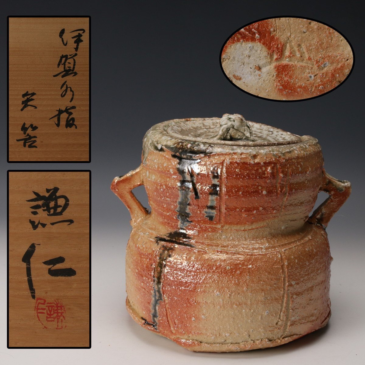 【佳香】岸本謙仁 伊賀矢筈水指 共箱 茶道具 本物保証