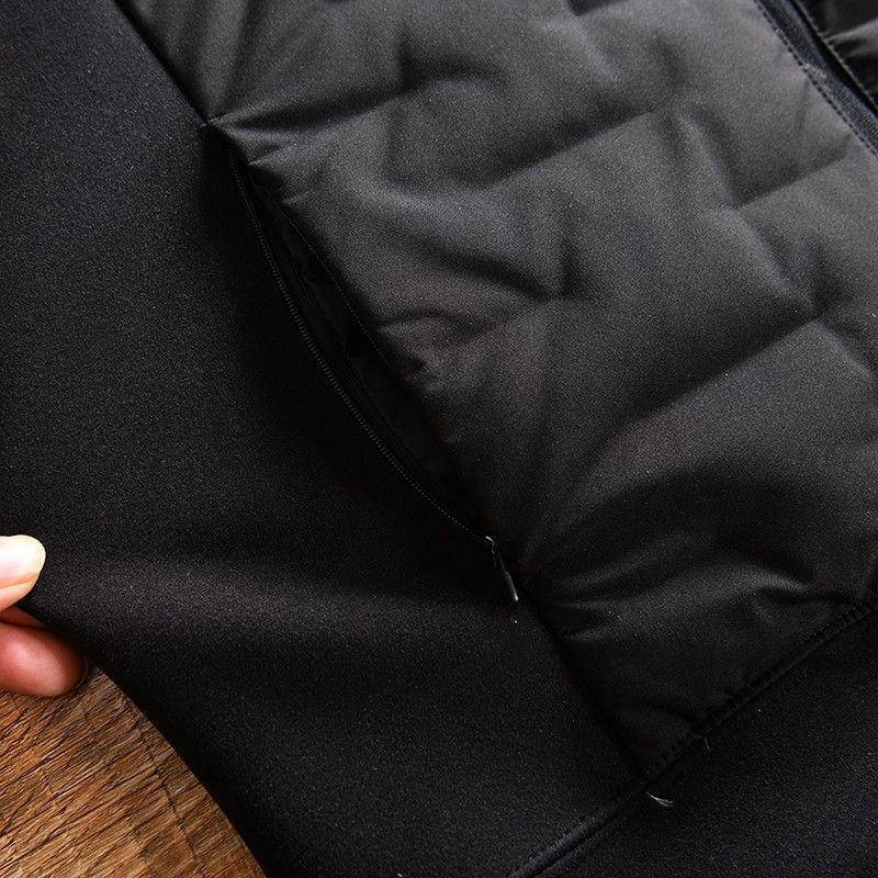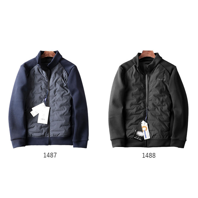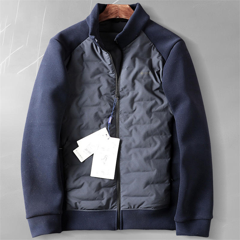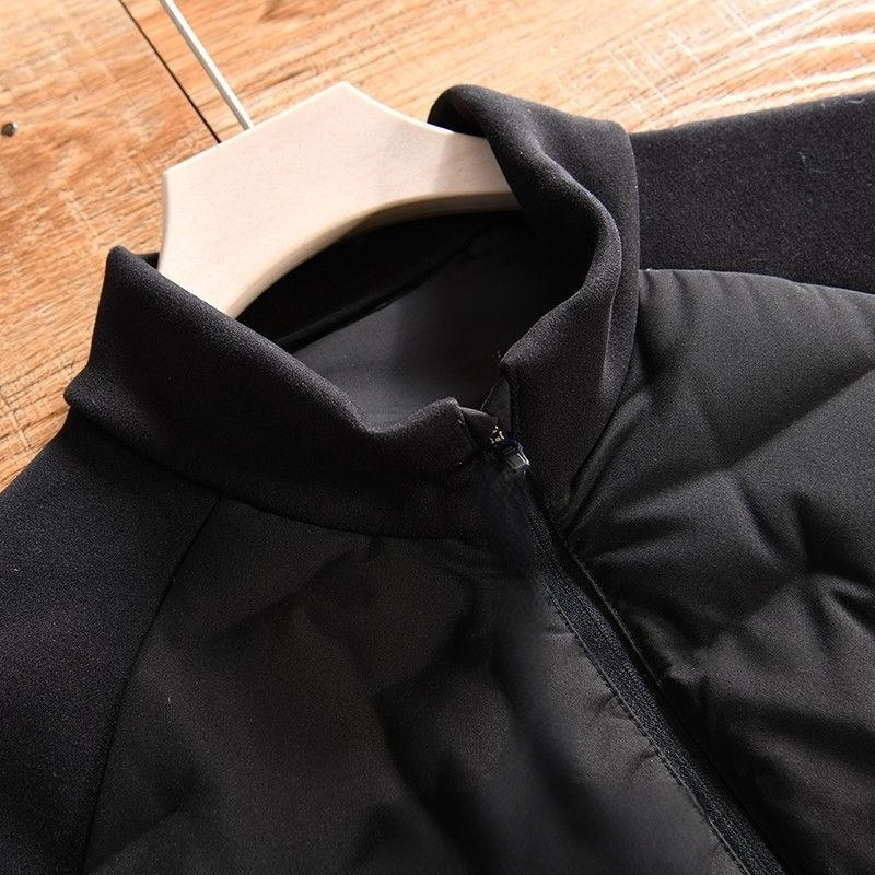 1487-XLネイビー ダウンジャケット メンズ 立ち襟 新品 防寒 軽量 保暖 暖かい 冬服 ビジネス カジュアル ニット切り替え ダウン アウター