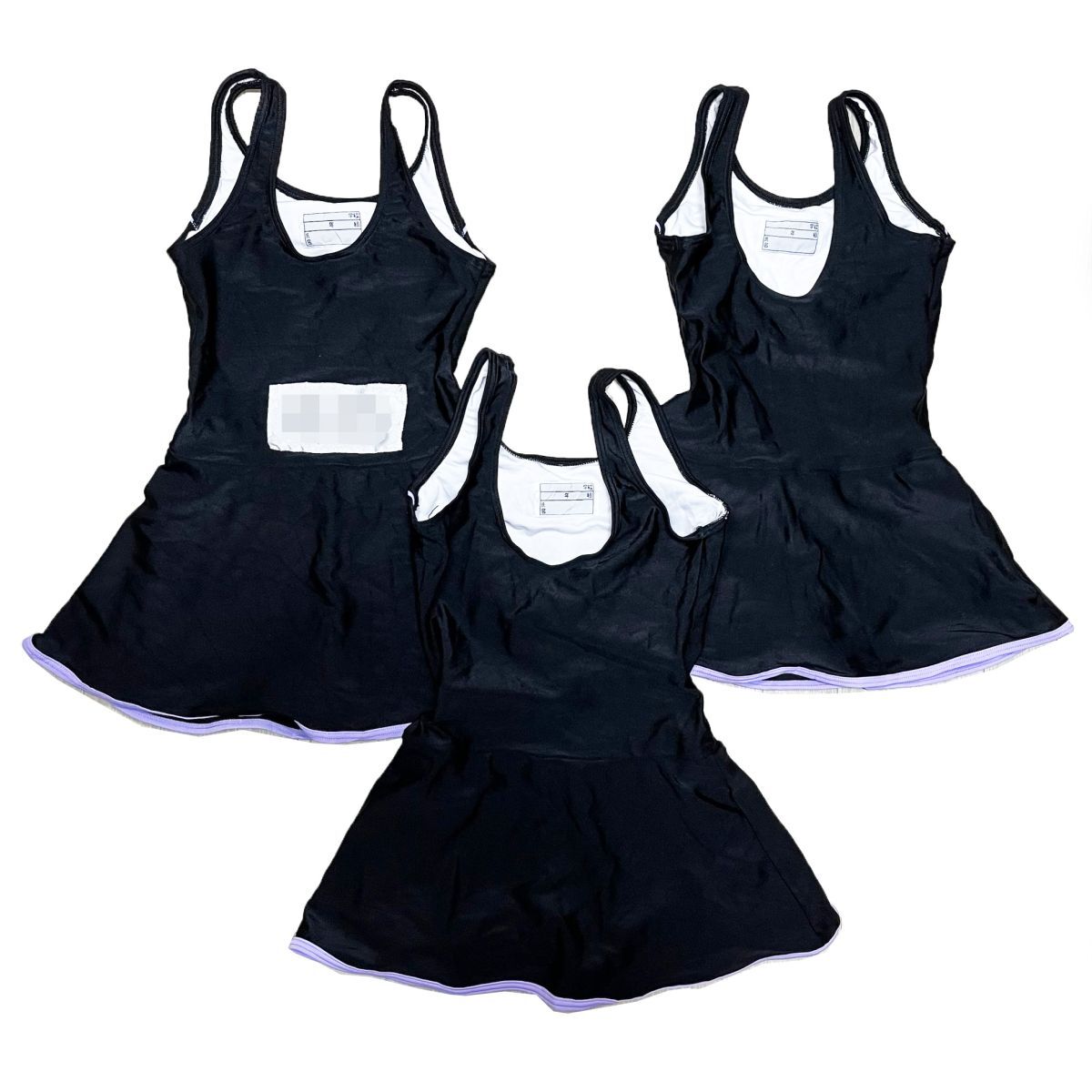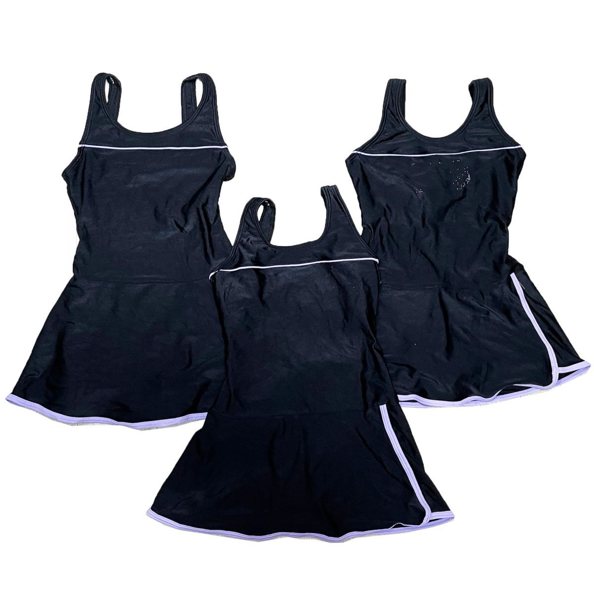 15【整理品リサイクル】イオン女子競泳水着3枚セット(160(L程度)・170(XL程度))★スカート★光沢黒ブラック★大きいサイズ 男性も