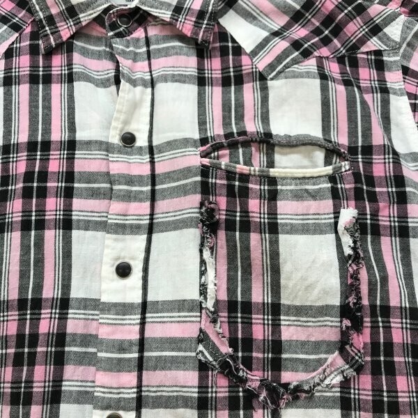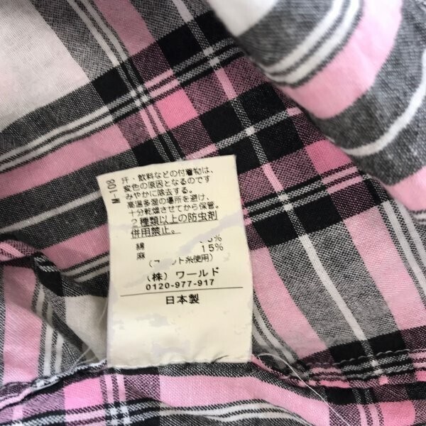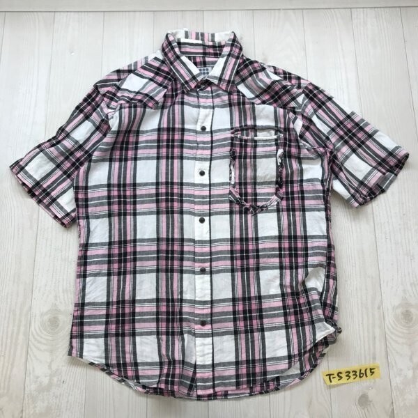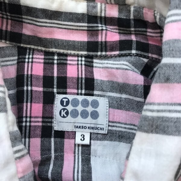 TK TAKEO KIKUCHI タケオキクチ メンズ チェック柄 リネン混 スナップボタン 半袖シャツ 3 白黒ピンク です。