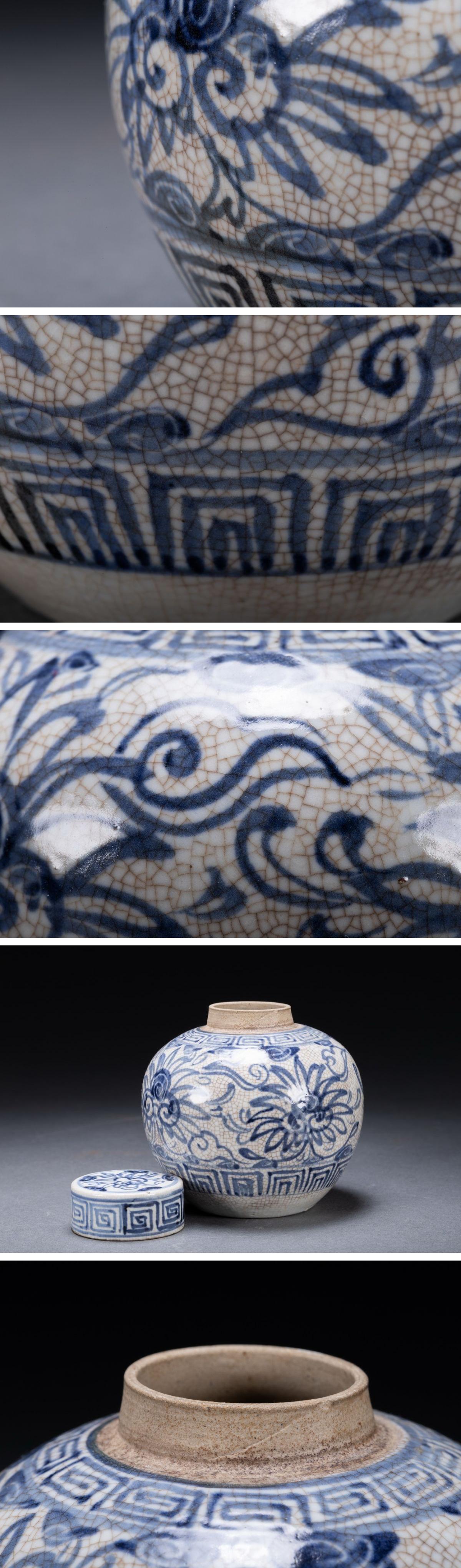 【雲錦】某有名オークション購入 時代物 一方堂 染付 染付茶葉入り 茶壷 共箱 古置物 古美術 時代コレクション7L10-115S1