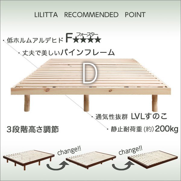 | 今回の出品でお求めいただける商品は 3段階高さ調節 脚付きすのこベッド【リリッタ】 (ポケットコイルロールマットレス付き) ダブル です。宜しくお願いします。 |