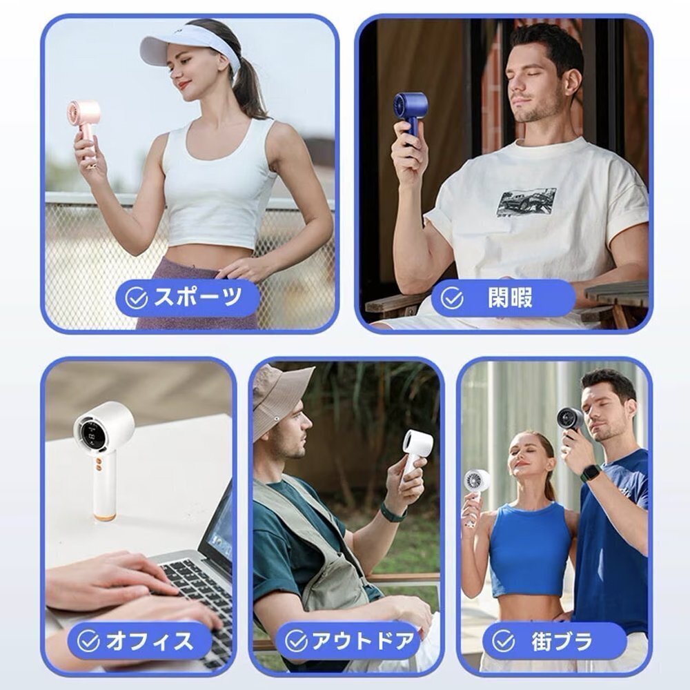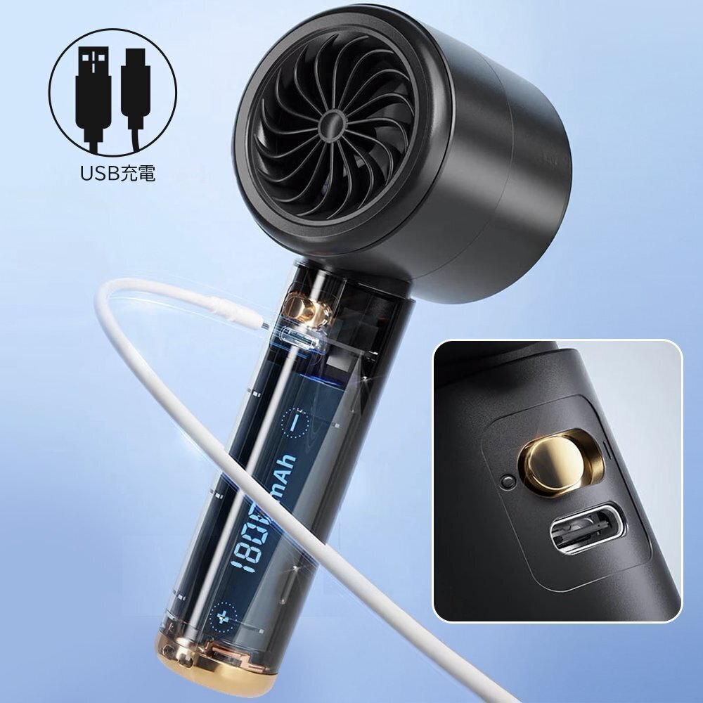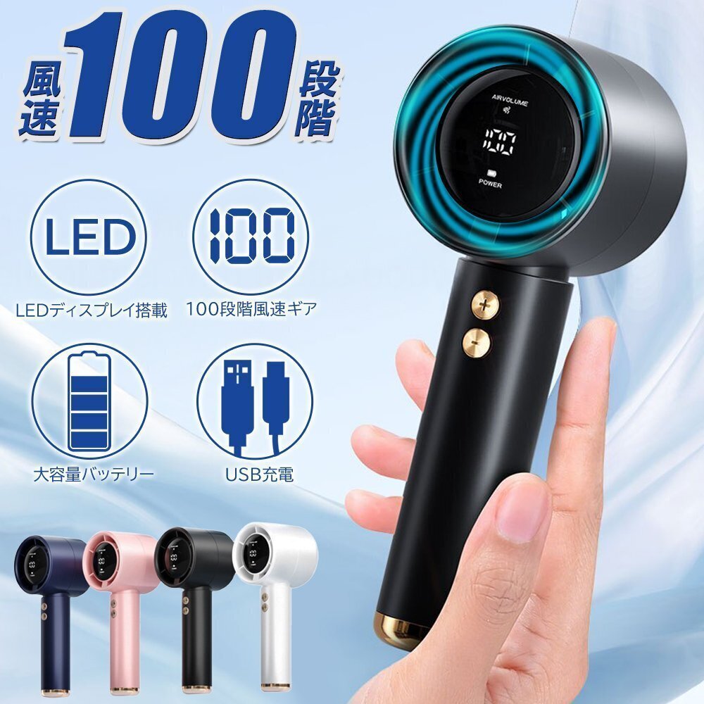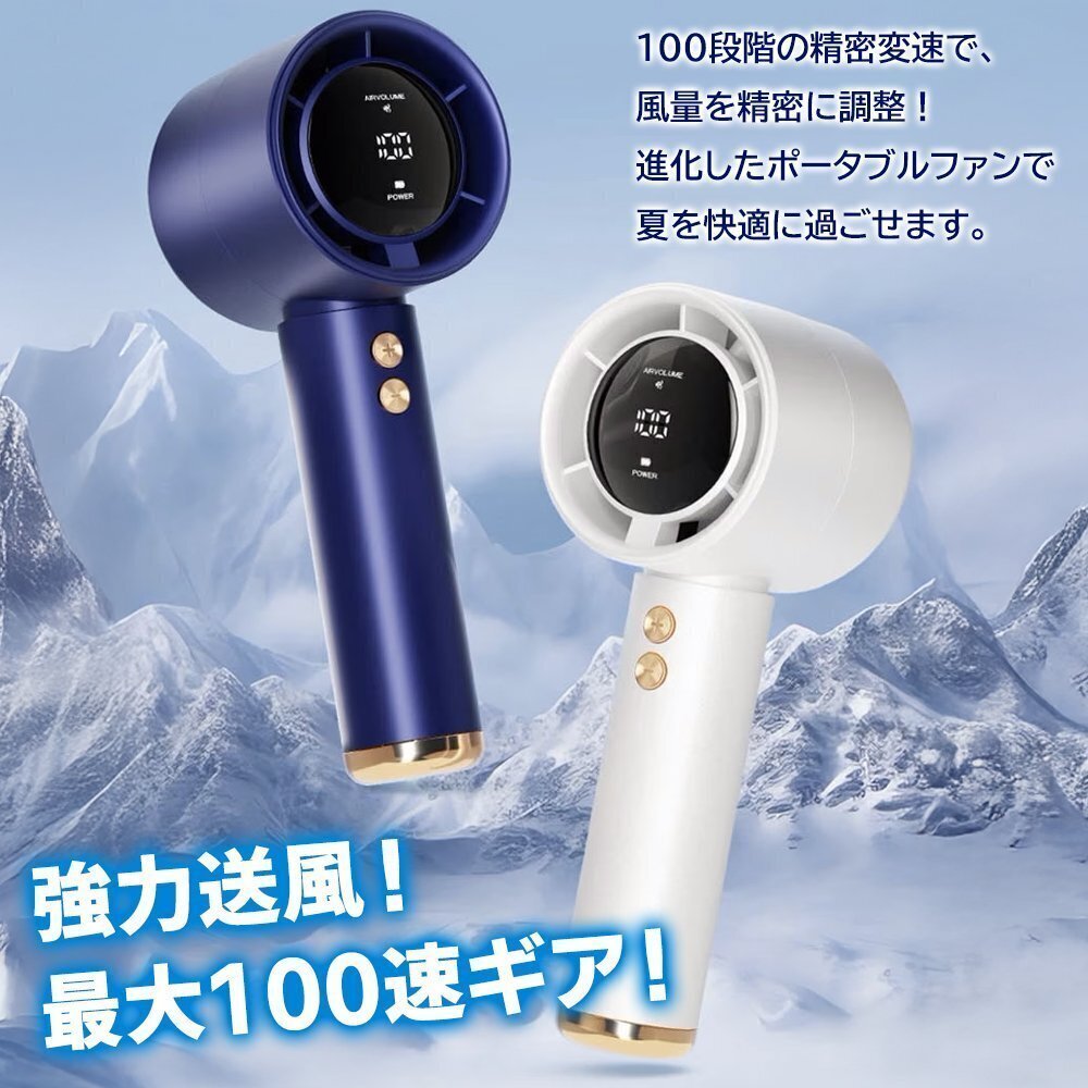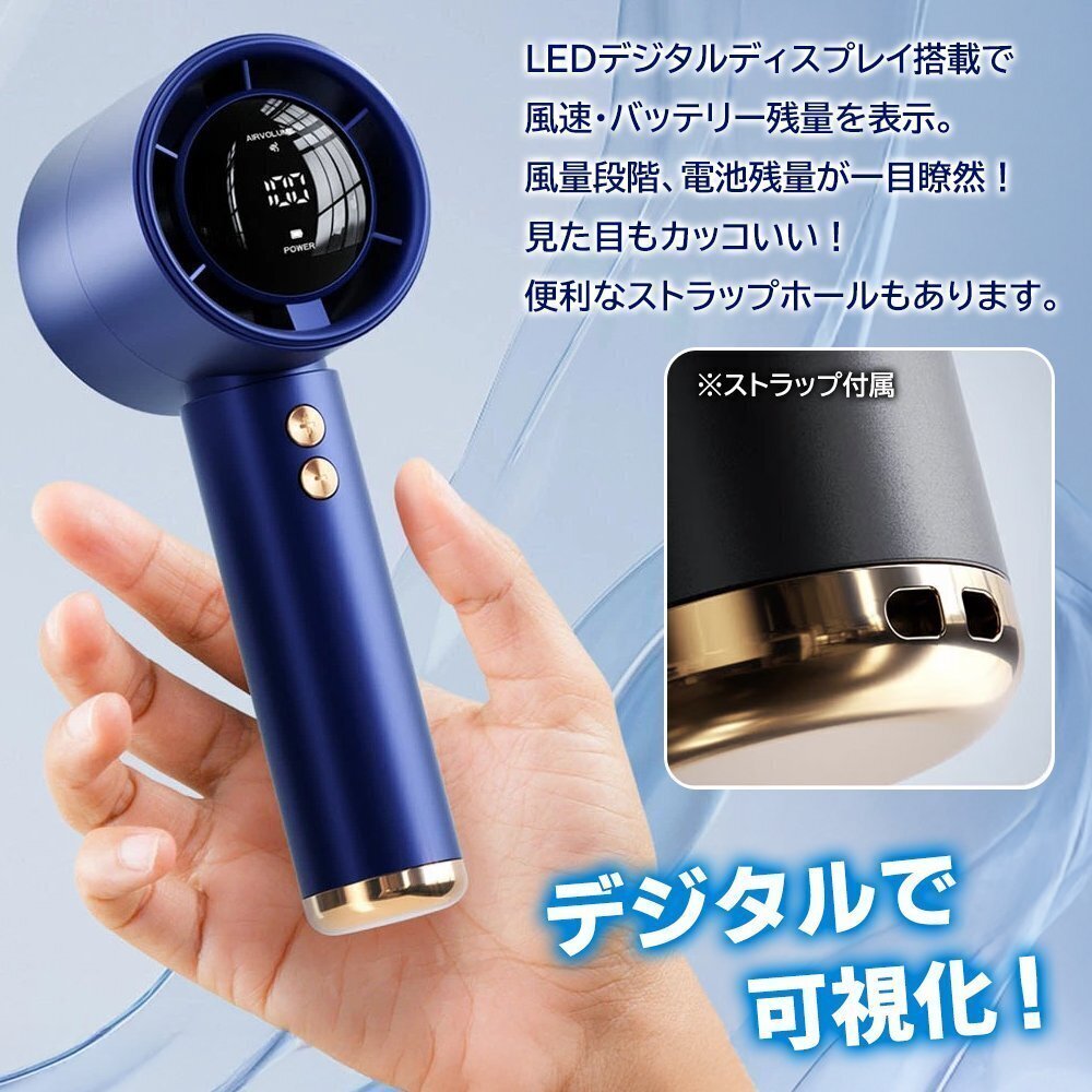 風力100段階/デジタル表示 デジタルターボファン 驚異の100速ギア搭載! 進化したターボファンで夏快適! パワフルな風量調整が可能な最新型ハンディファン登場! 風速・バッテリー残量を表示するデジタルディスプレイ搭載! コンパクトでスタイリッシュなデザインで、持ち運