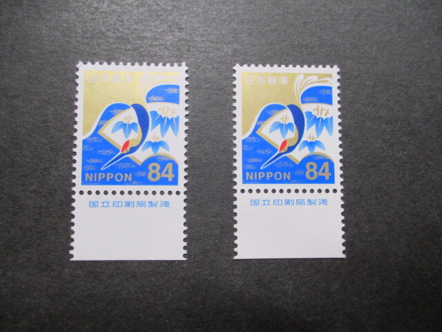慶事切手   令和・つる・84円    銘版付き単片*2枚      美品
