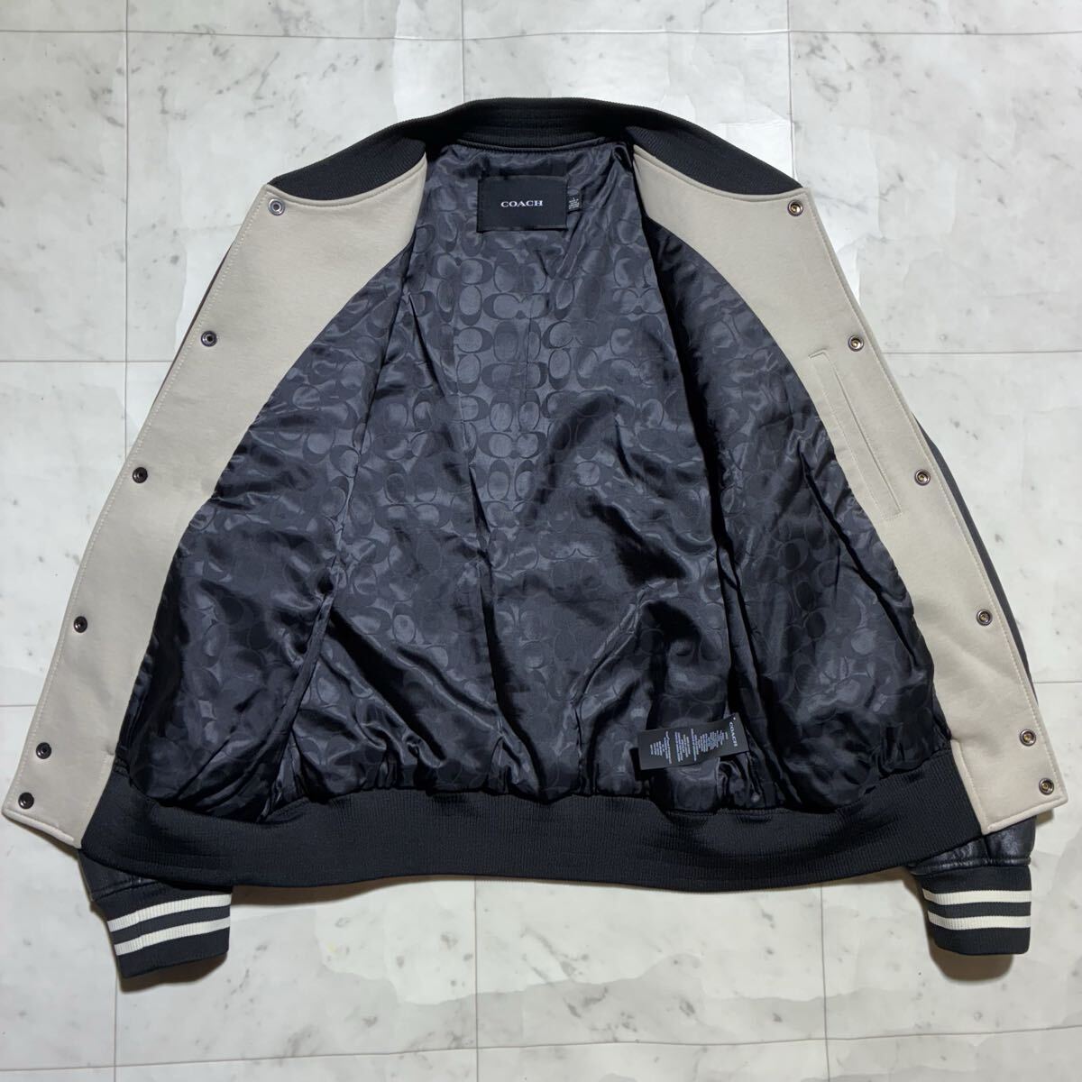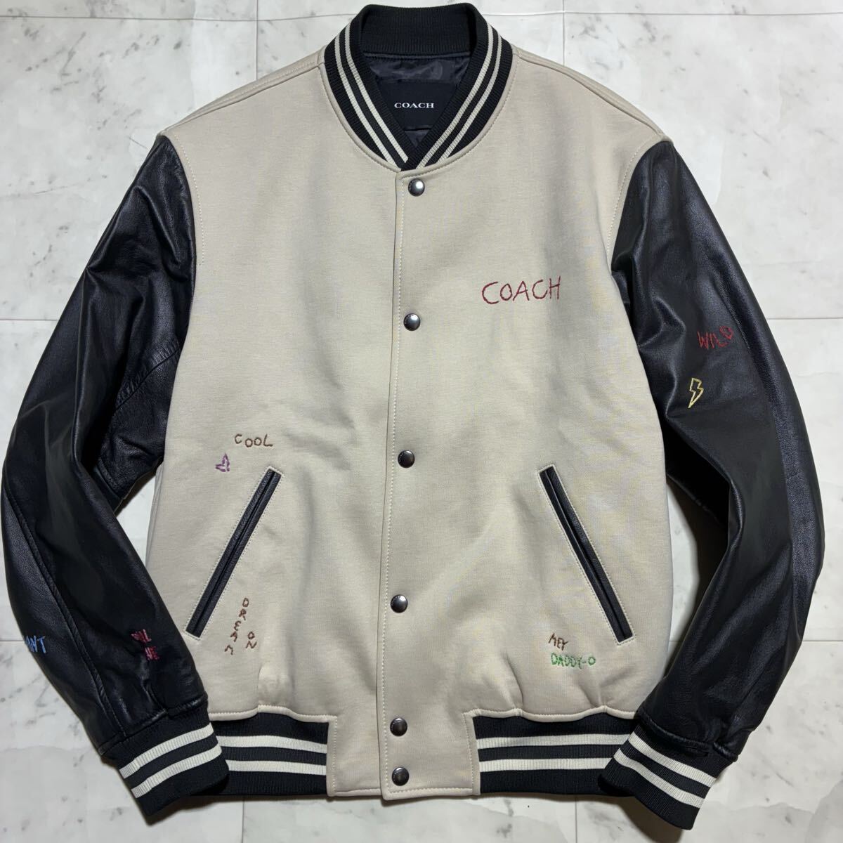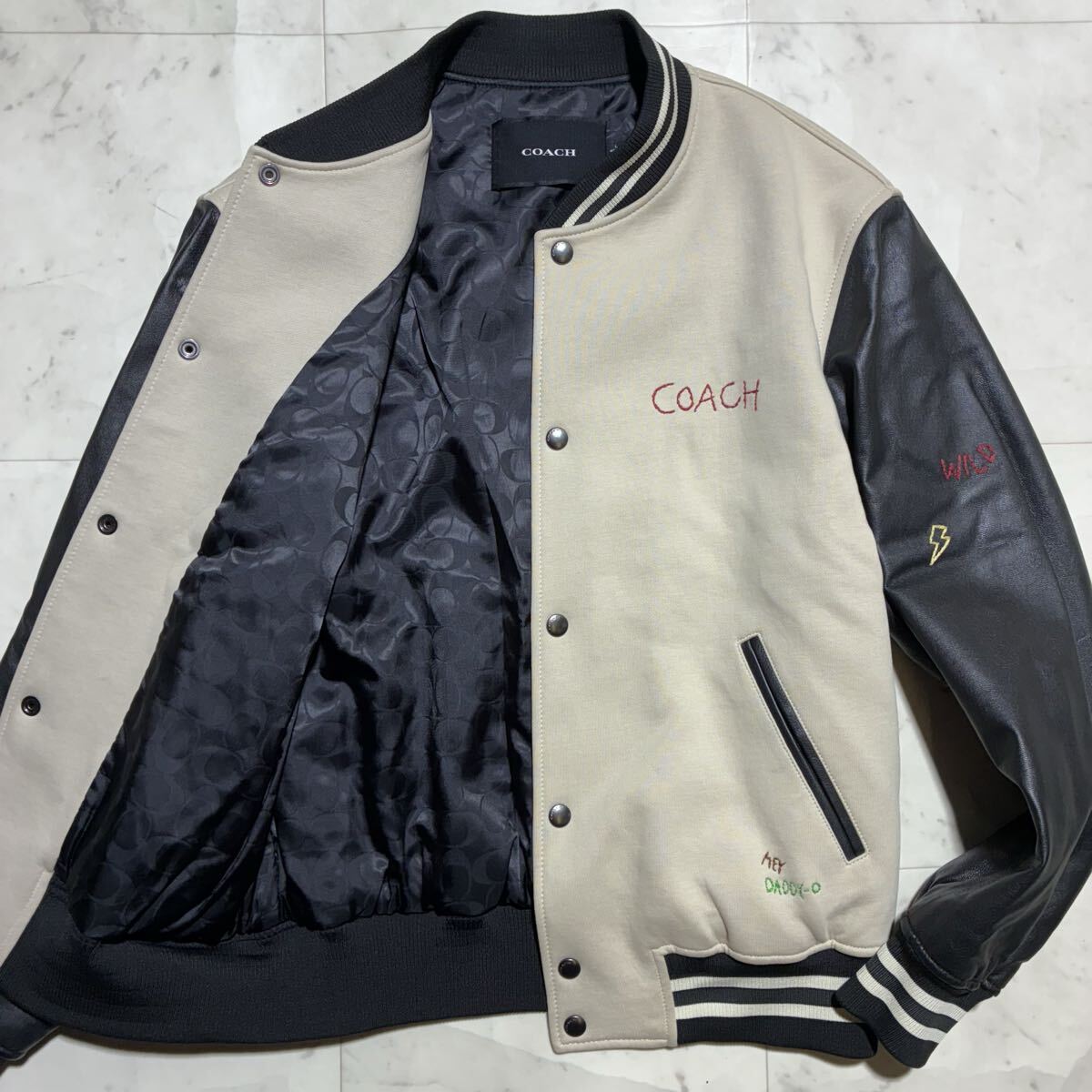 未使用級/XLサイズ相当★コーチ/COACH ステッチ装飾 袖レザーコンビスタジャンジャケット 羊革 シグネチャー総柄 中綿ブルゾン メンズ