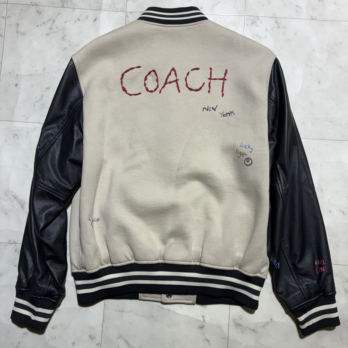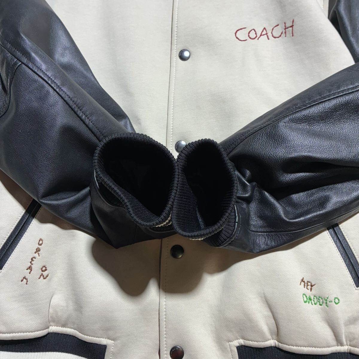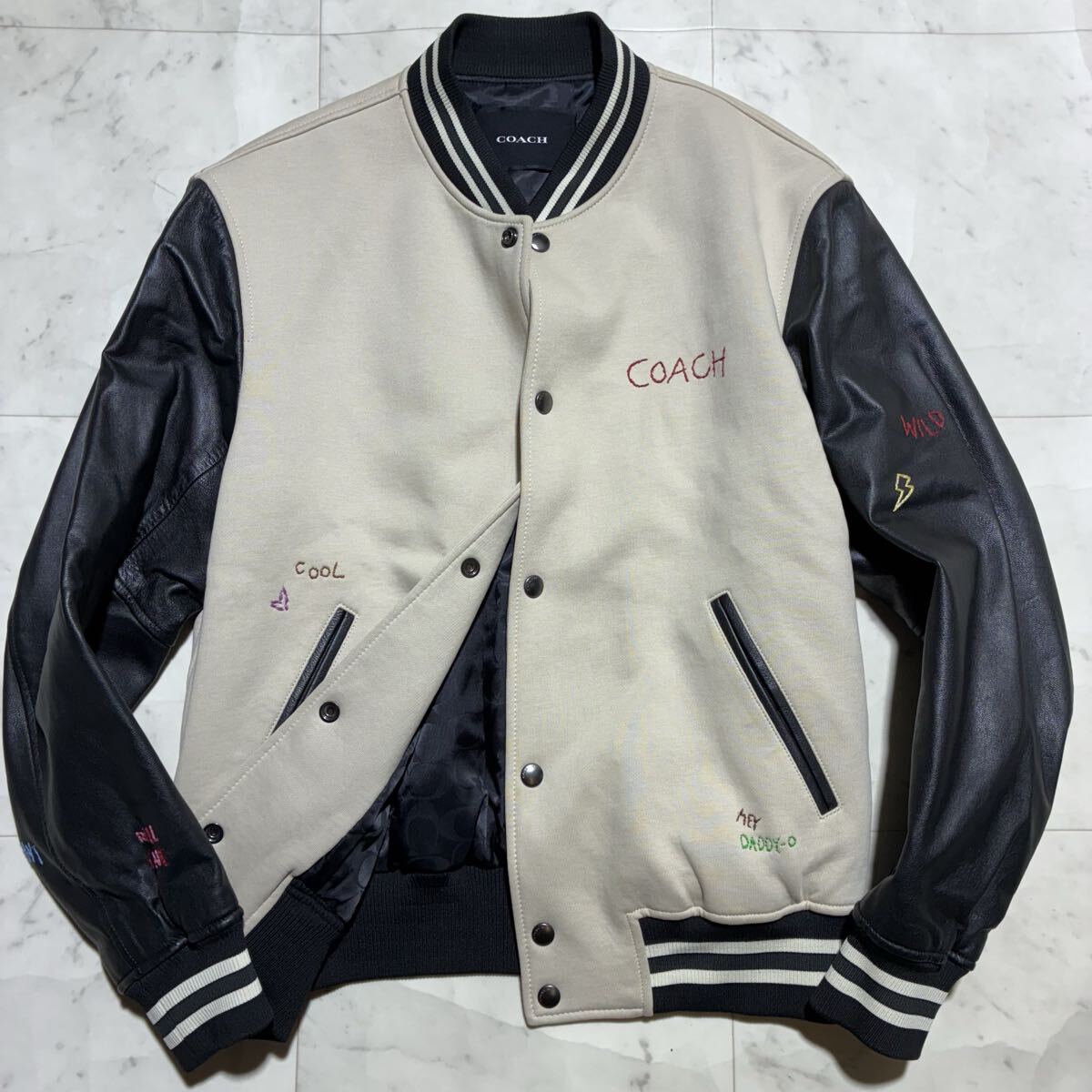 未使用級/XLサイズ相当★コーチ/COACH ステッチ装飾 袖レザーコンビスタジャンジャケット 羊革 シグネチャー総柄 中綿ブルゾン メンズ