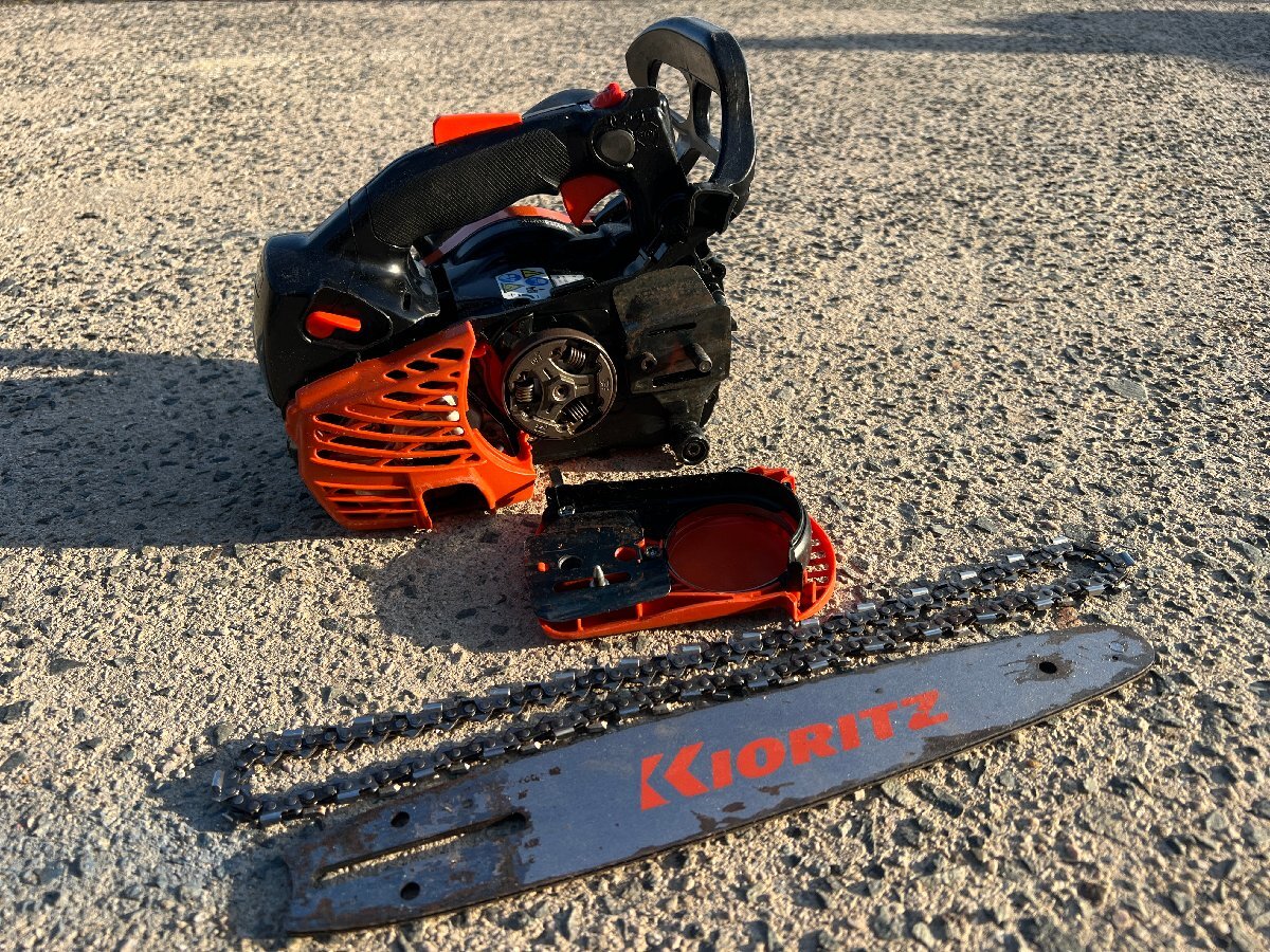 共立 CS252T トップハンドル エンジンチェンソーです。燃料混合油 バーの長さ約25㎝ 取扱説明書付き★動作確認済み現状渡しです。温水高圧洗浄済み★
