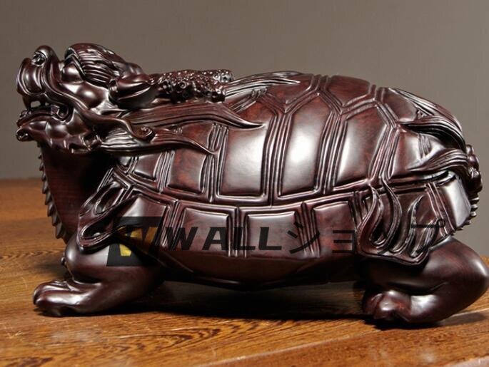 極美品 ★黒檀木彫り竜亀の置物長さ15 cm