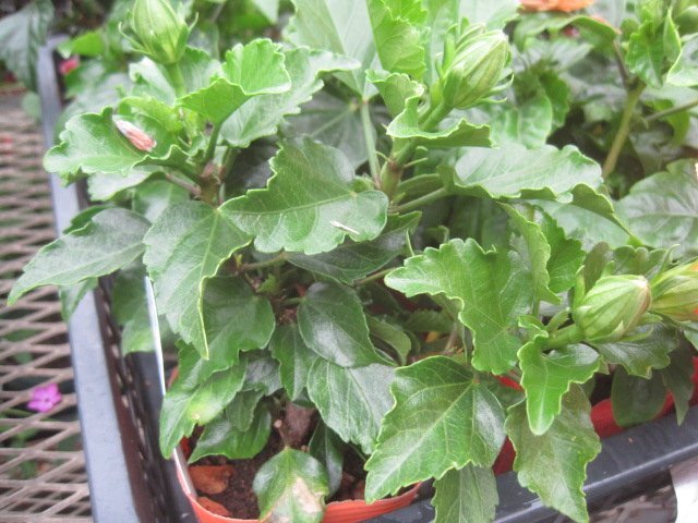 夏の花、ハイビスカス。次々に花を咲かせ、花色もバラエティに富んでいます。
