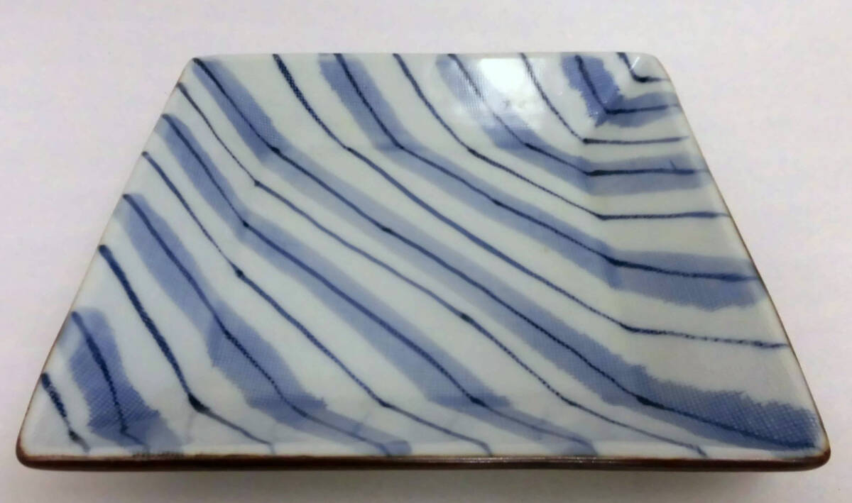 | 煎茶席用菓子小皿 斜線紋様 時代・砥部焼 煎茶道具 東吉窯 | ||