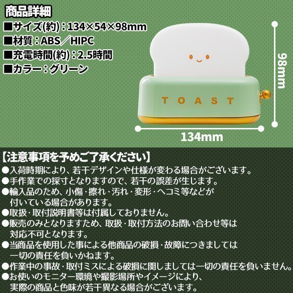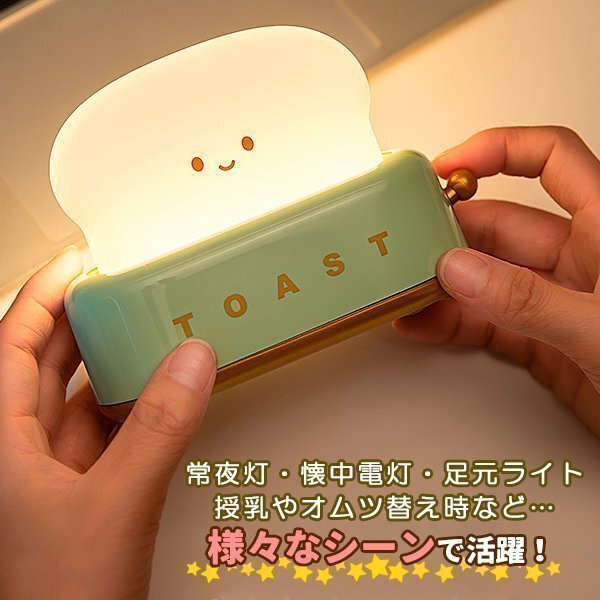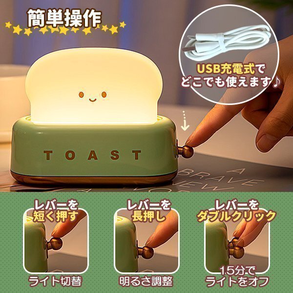 ルームランプ ベッドライト 間接照明 ナイトライト トースター トースト ランプ 食パン型 ライト USB充電式
