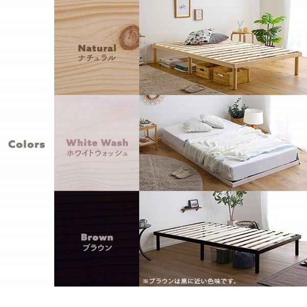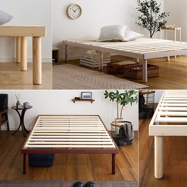| 2段階高さ調整可能な脚付きすのこベッド。 北欧産パインフレームを使用し、通気性と耐久性にも優れた頑丈設計を採用! 低ホルムアルデヒド仕様で、F★★★★(フォースター)獲得、健康にも配慮した商品です。 |