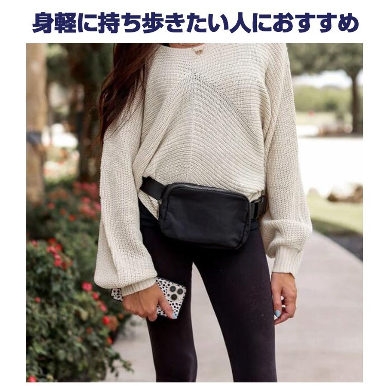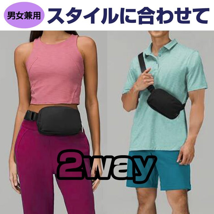 ウエストに巻くだけでなく、斜めがけのボディバッグとして2wayで使用できます。