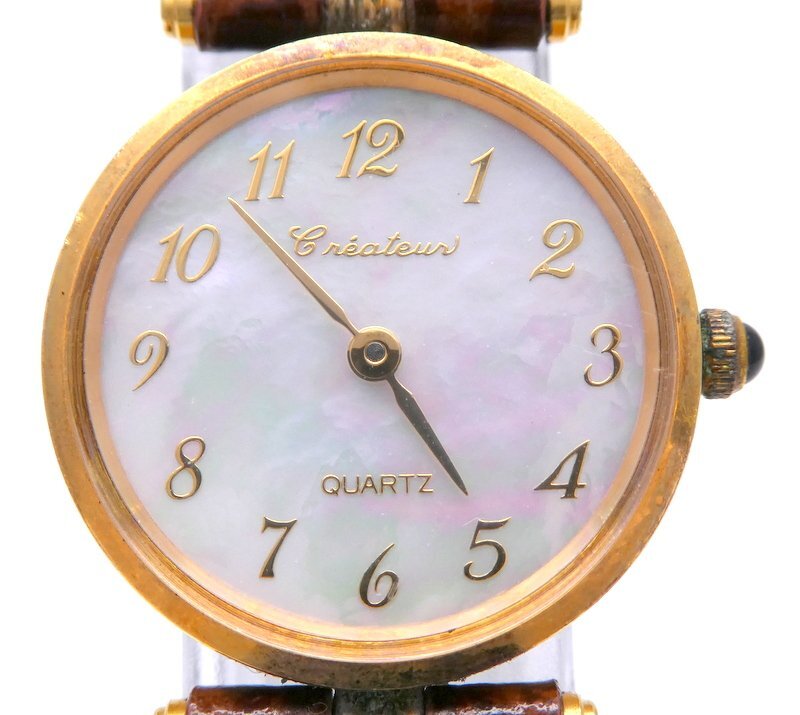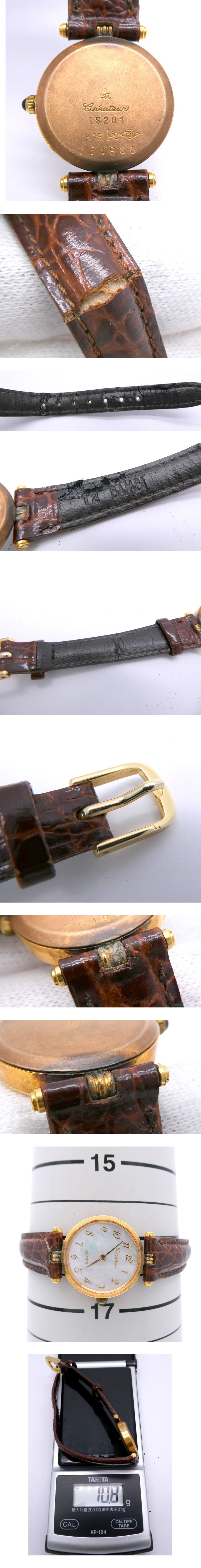 Createur IS201 クオーツ QZ シェル文字盤 K18/750/ホールマーク刻印有 総重量約10.8g 腕時計 クレアトゥール 1円~ K0426