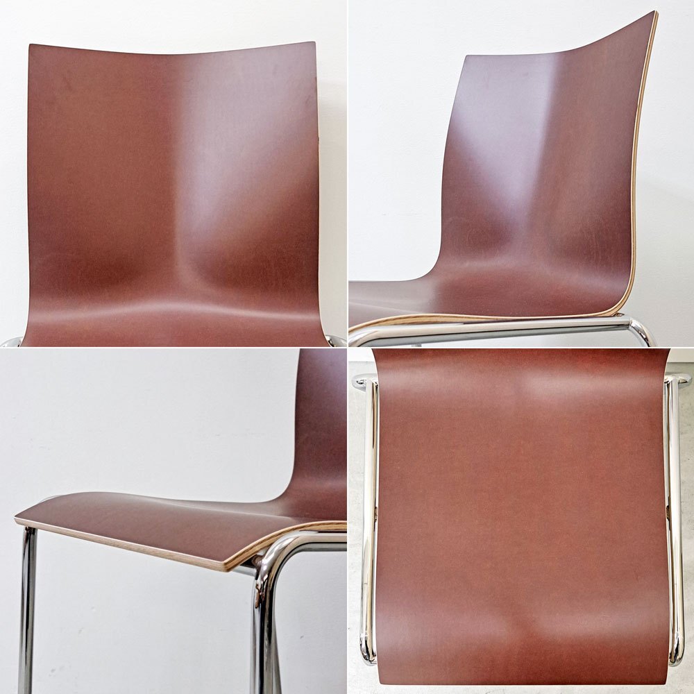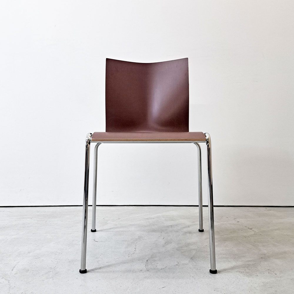 | コメント | デンマークのファニチャーブランド、エンゲルブレヒト | Engelbrechtsより ダイニングチェアです。 優れたデザインと、当時の最先端技術を取り入れたモディファイによって世界的な評価を得ているデンマークの家具たち。 今回はよりモダンに使いやすい1脚です。 デザインはエリック・マグヌッセン。代表作でもあるステルトンのバキュームジャグはそのアイコニックな佇まい、二重構造のガラスボトルによる高い保温性もあり、今でも世界的なプロダクトとして評価されています。 もともとはデンマークの老舗窯ビング オー グロンダールからキャリアを始めた事もあり、素材によって異なる質感を巧みに取り入れたデザインはダニッシュモダンに相応しい実力を備えています。 チャリックはシンプルなデザインが印象的な1脚。 プライウッドを3次元的に成型したシートは強靭で軽量。畳むように背もたれに付けられた折り目は、不快感の原因にもなる背骨への干渉を防ぎ、柔らかく身体を受け止めてくれます。 シートの奥行きは約38センチとやや浅めの座り心地に感じられますが、それを上回る高いフィット感。 巧みな膝周りのカーブも相まって立ち座りもしやすく、スタッキングも可能なため普段使いからオフィスユースまで幅広いシーンで活躍してくれる1脚です。 ※当ショップは、主にリサイクル品を取り扱っております。基本的にUSED品である事をご理解頂き、ご入札をご検討下さいませ。 |