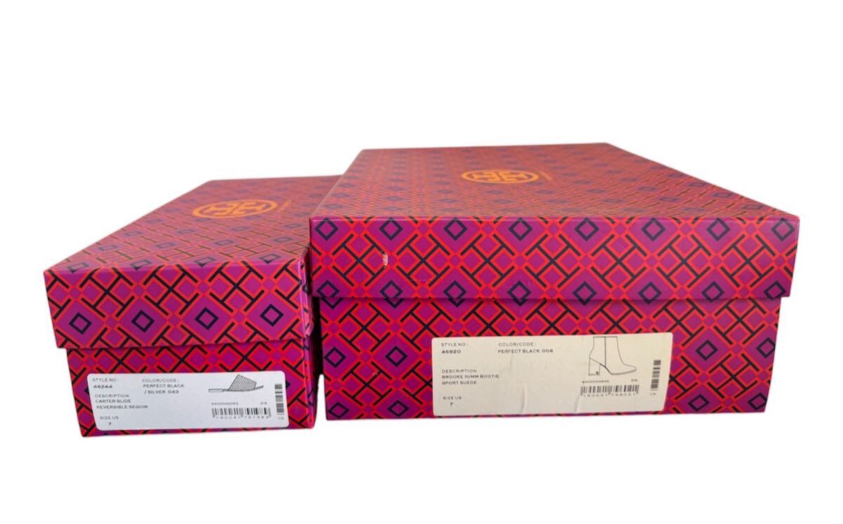 中古 Tory Burch トリーバーチ スウェード ショートジップアップブーツ ブラック サンダル サイズ7 まとめ 2足セット
