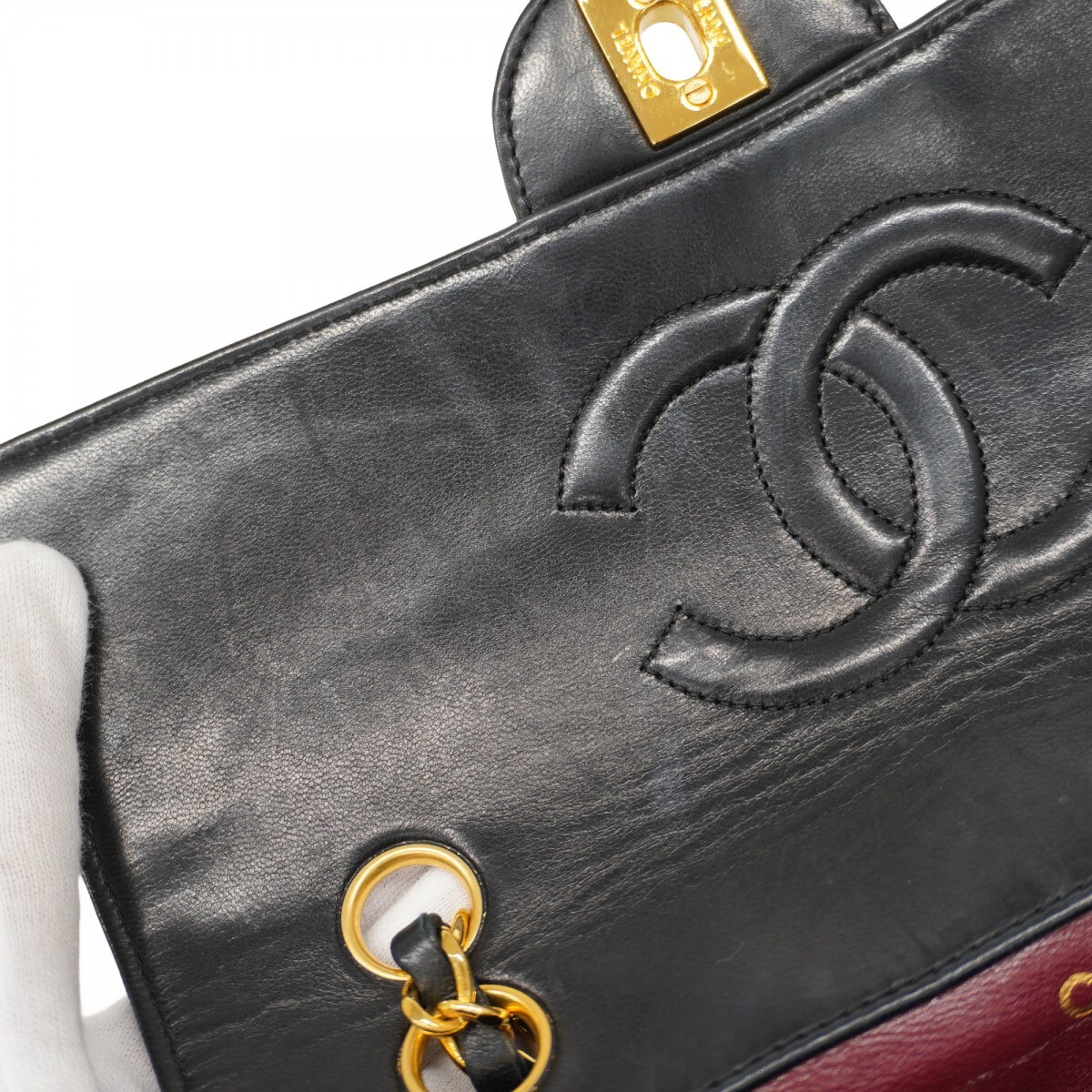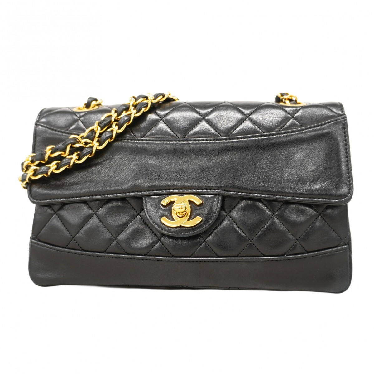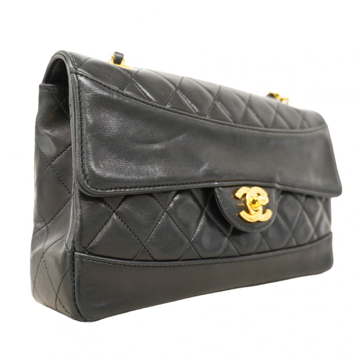 ★SALE【5md4261-h】シャネル ショルダーバッグ マトラッセ Wチェーン ラムスキン ブラック ゴールド金具【中古】レディース