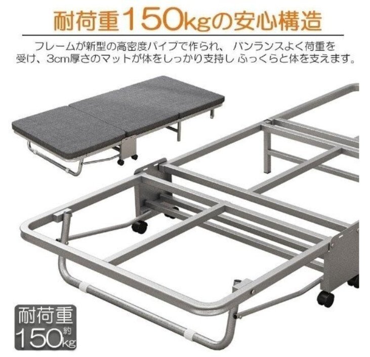 新作* 折りたたみベッド コンパクト シングル 三つ折り 耐荷重キャスター付 折り畳み シングルベッド 軽量 組立簡単