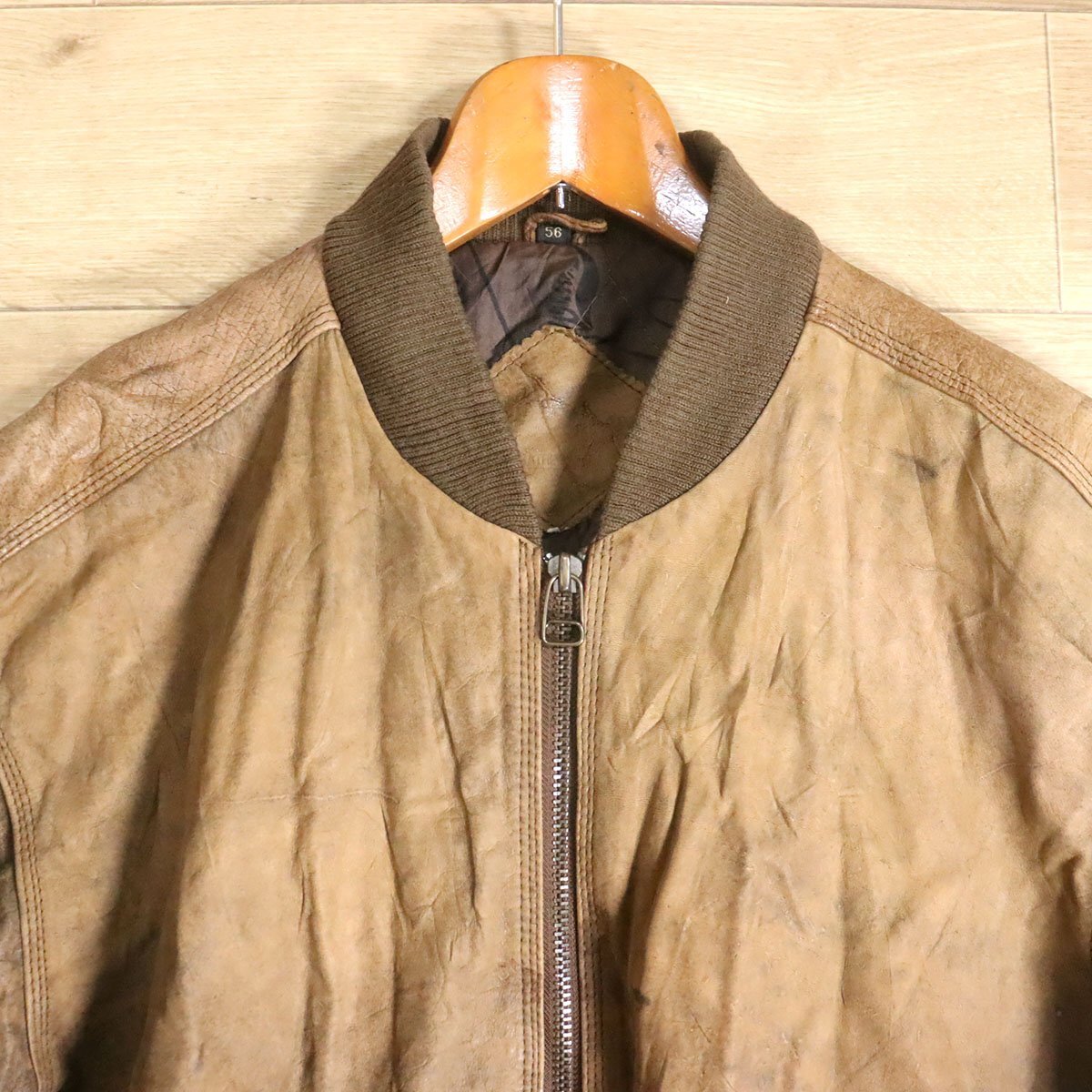 B20O/Y6.2-4 レザーブルゾン 本革 革ジャン 皮ジャン 牛革 レザージャケット 革ジャン キャメル メンズ 56