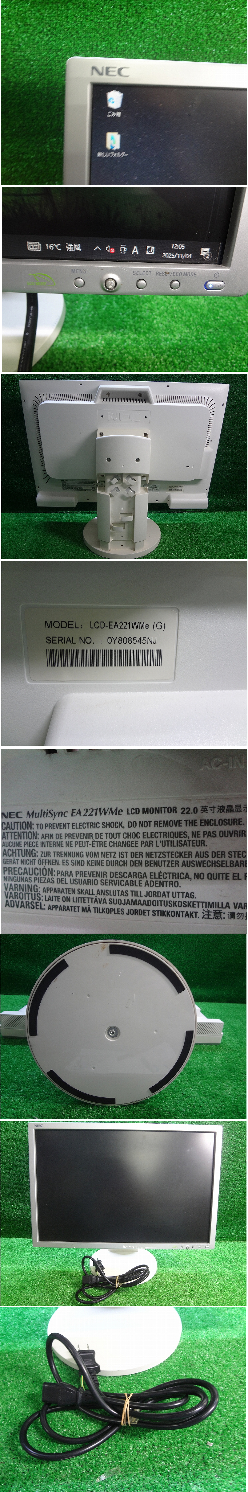 | 商品名 | Kルみ1633 NEC■ワイドモニター■LCD-EA221WMe■22インチ■電源ケーブル付属 液晶モニター パソコン周辺機器 液晶ディスプレイ |