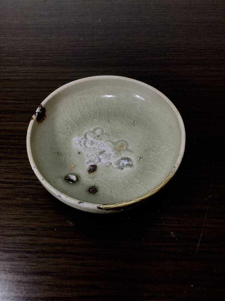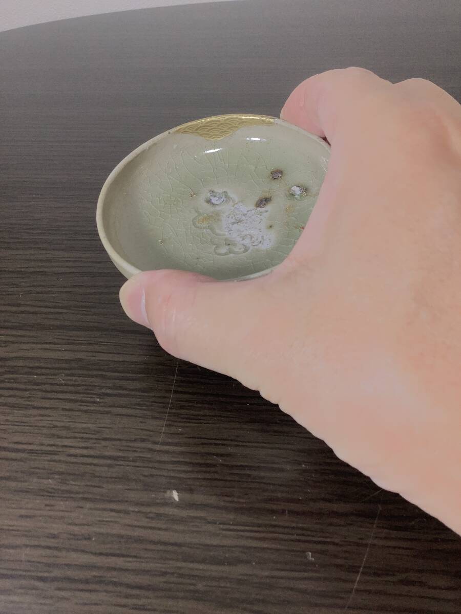 丁寧な青海波の蒔絵直しを施された御深井の盃です。