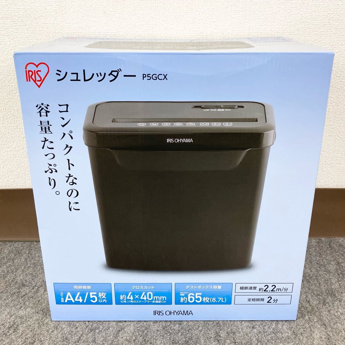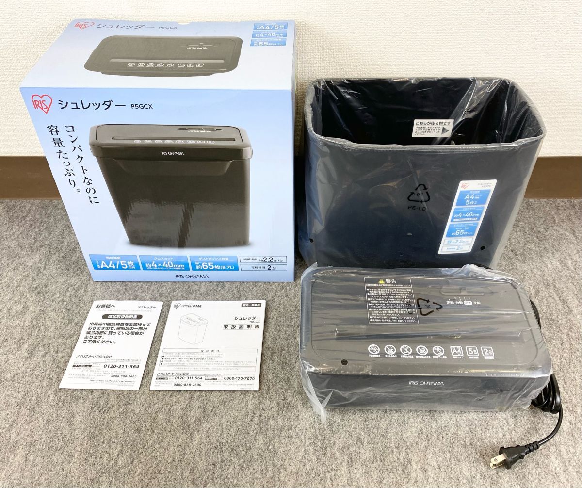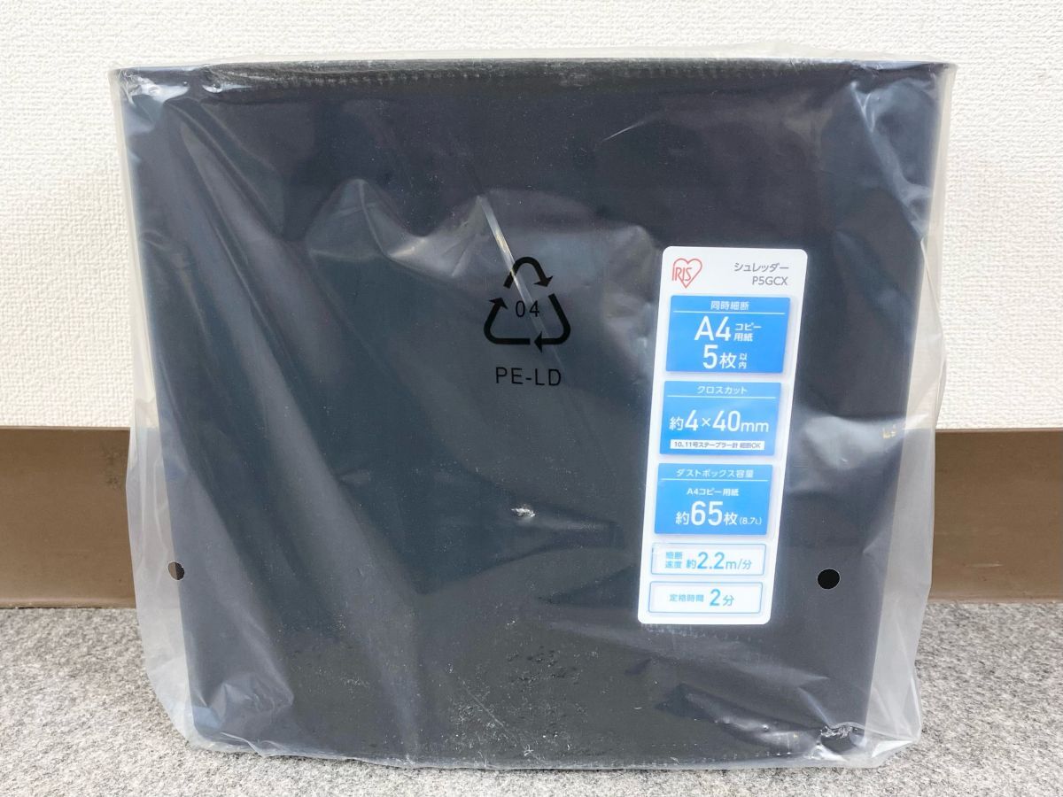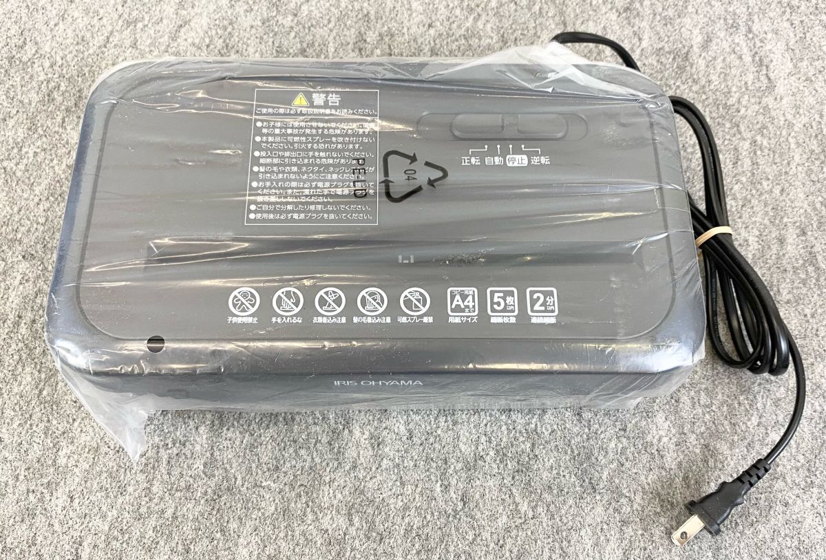 【婀】未使用 ARIS OHYAMA アイリスオーヤマ 電動 シュレッダー P5GCX 家庭用 細断機 A4サイズ5枚同時細断 ダスト容量8.7L J29CB10
