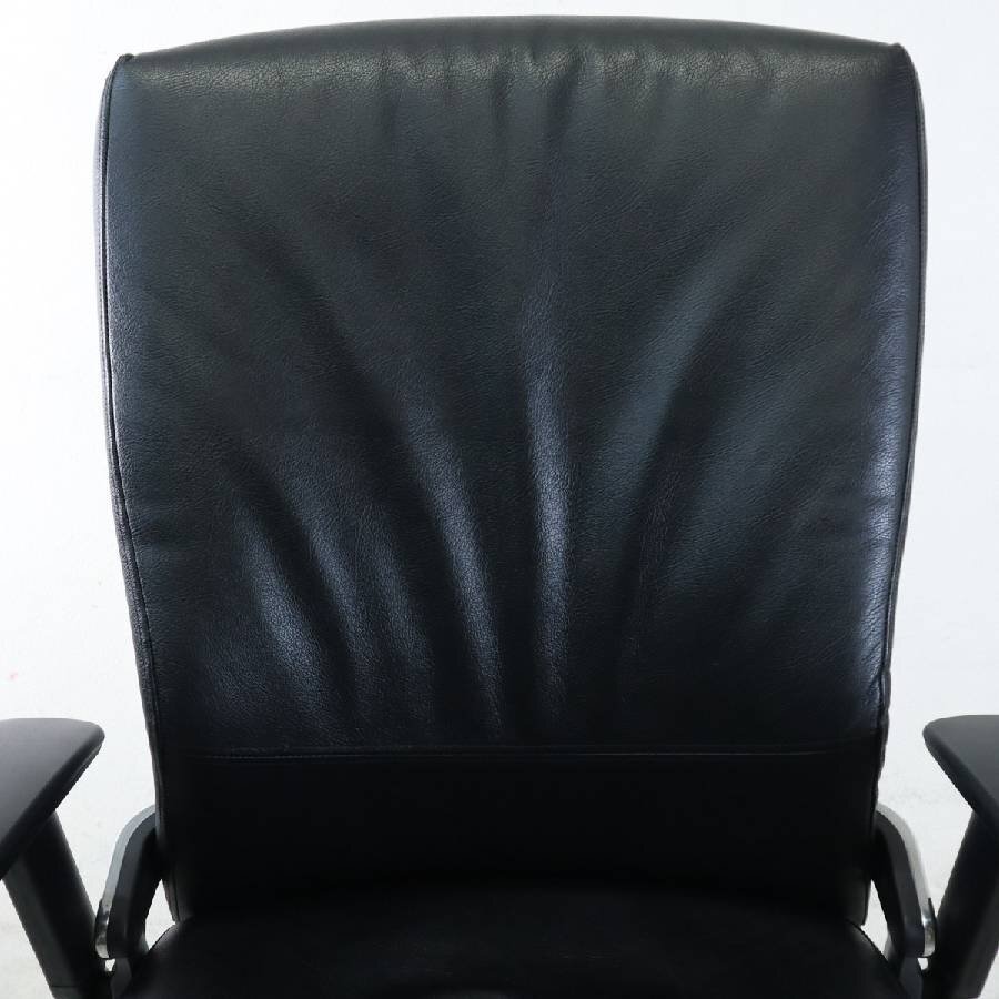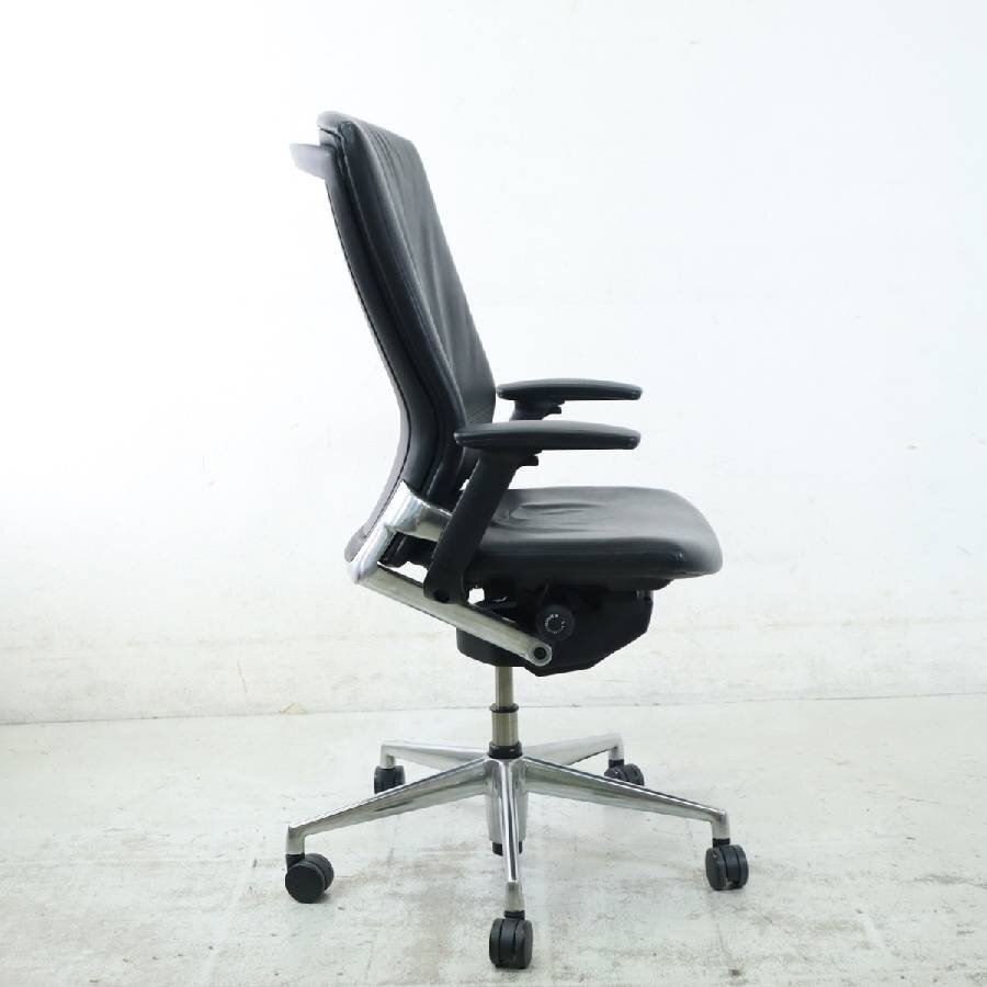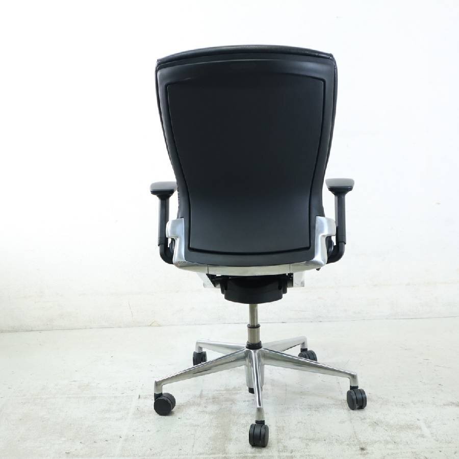 内田洋行 Pulse パルス デスクチェア PA-900L 本革張り背樹脂カバー ブラック 可動肘付き【リクライニング固定不良】★286h11
