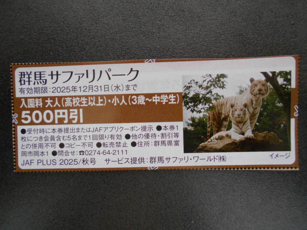 群馬サファリパーク 割引券1枚 JAFクーポン
