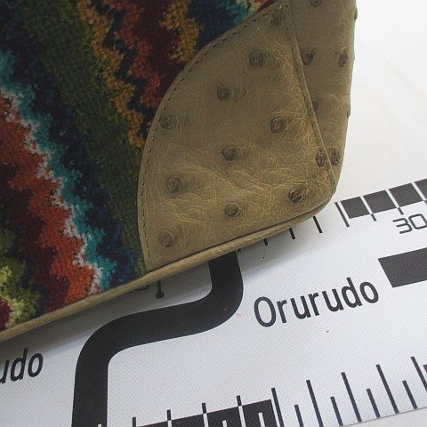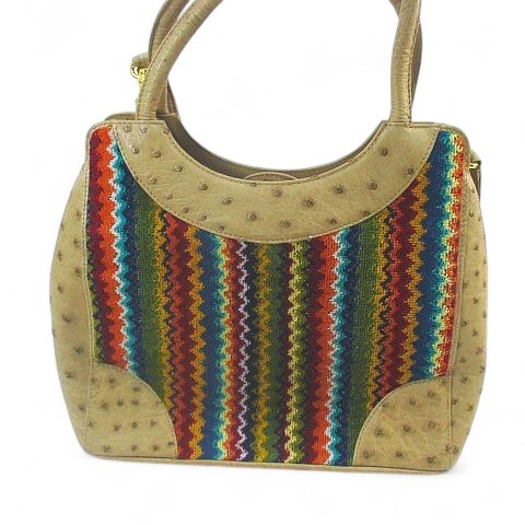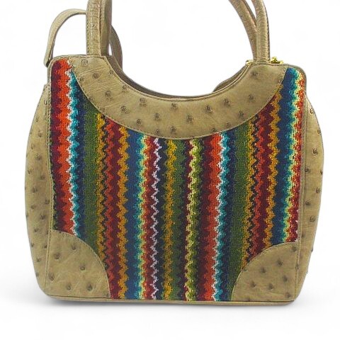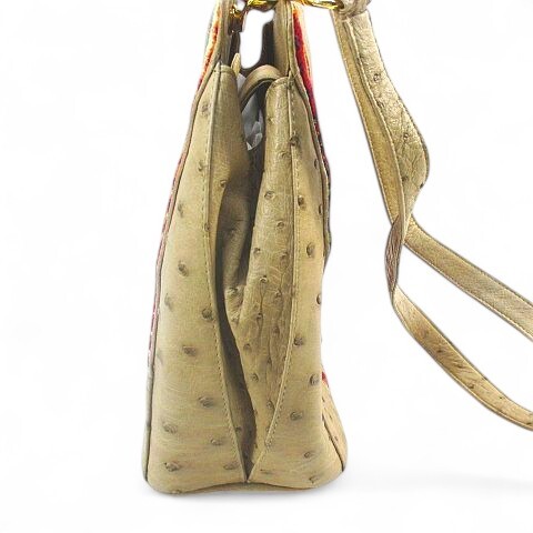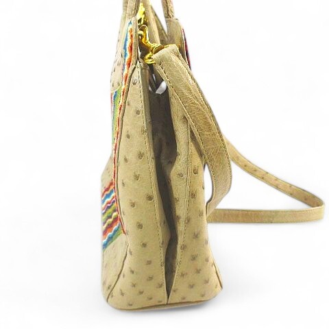 CARACARA ハンド ショルダー 2WAYバッグ ストライプ ベージュ オーストリッチ タオル地