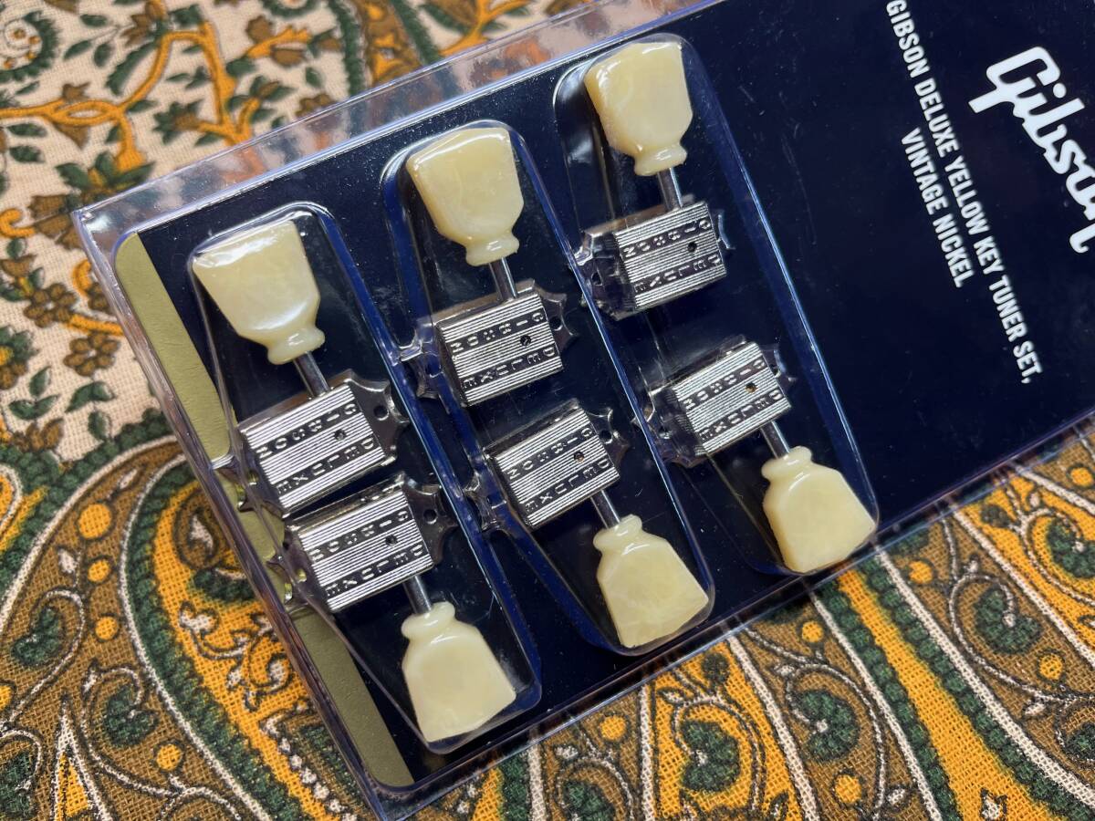 こちらは、ギブソン純正のペグ『PMMH-050 Vintage Nickel Machine Heads Yellow Buttons』になります。