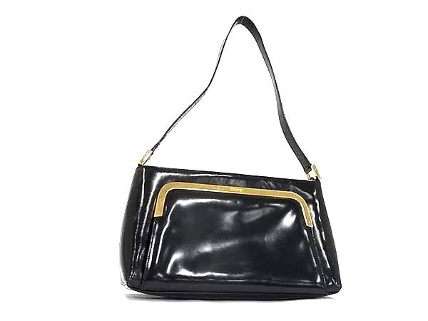 1円 ■美品■ GUCCI グッチ パテントレザー ワンショルダーバッグ 肩掛けかばん レディース ブラック系 FS5666