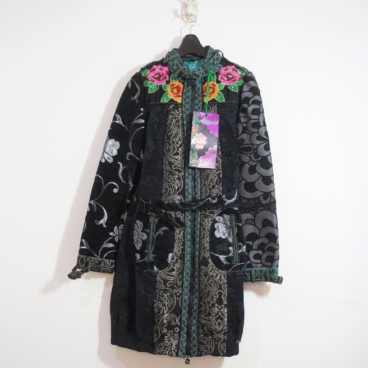 Desigual (38) モロッコ製 総柄刺繍 コート 花柄 デシグアル 17E2967 J10-160