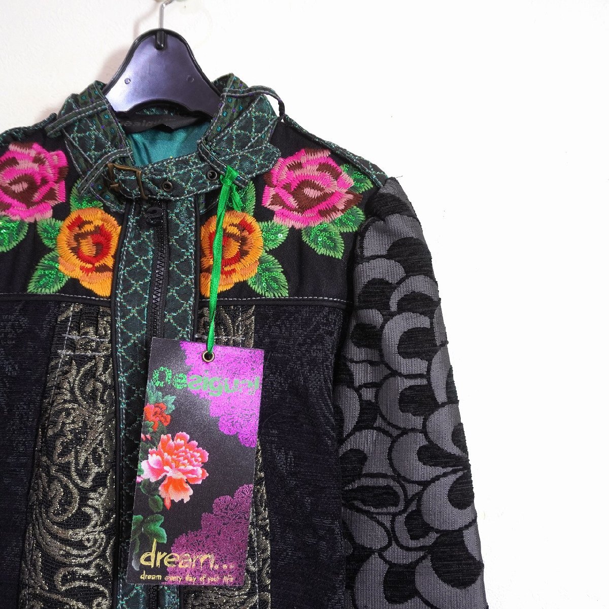 Desigual (38) モロッコ製 総柄刺繍コート 花柄 デシグアル 17E2967 J10-160