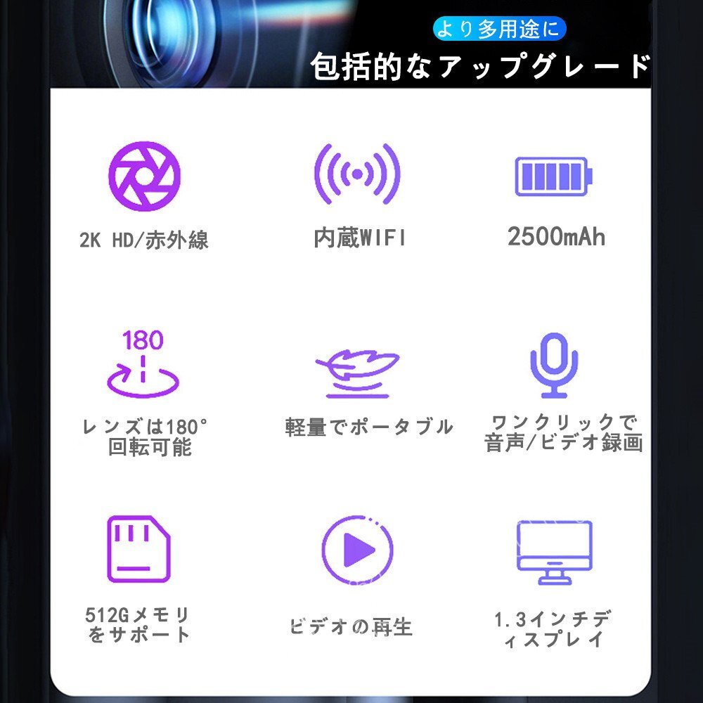 この高性能アクションカメラは、2Kの高解像度と赤外線ナイトビジョン機能を備え、昼夜を問わず鮮明な映像を提供します。