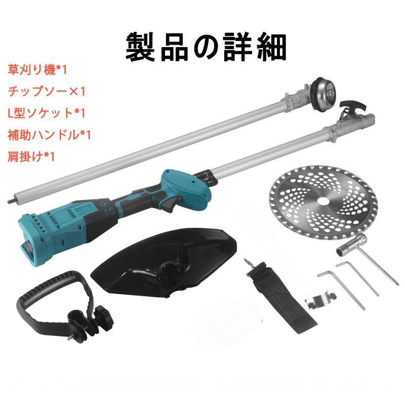 草刈り機*1、 チップソー×1、L型ソケット*1、補助ハンドル*1、肩掛け*1