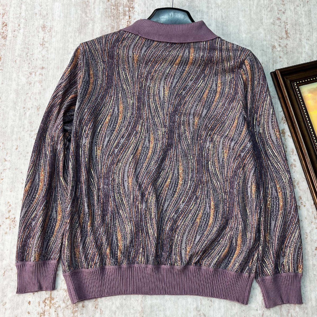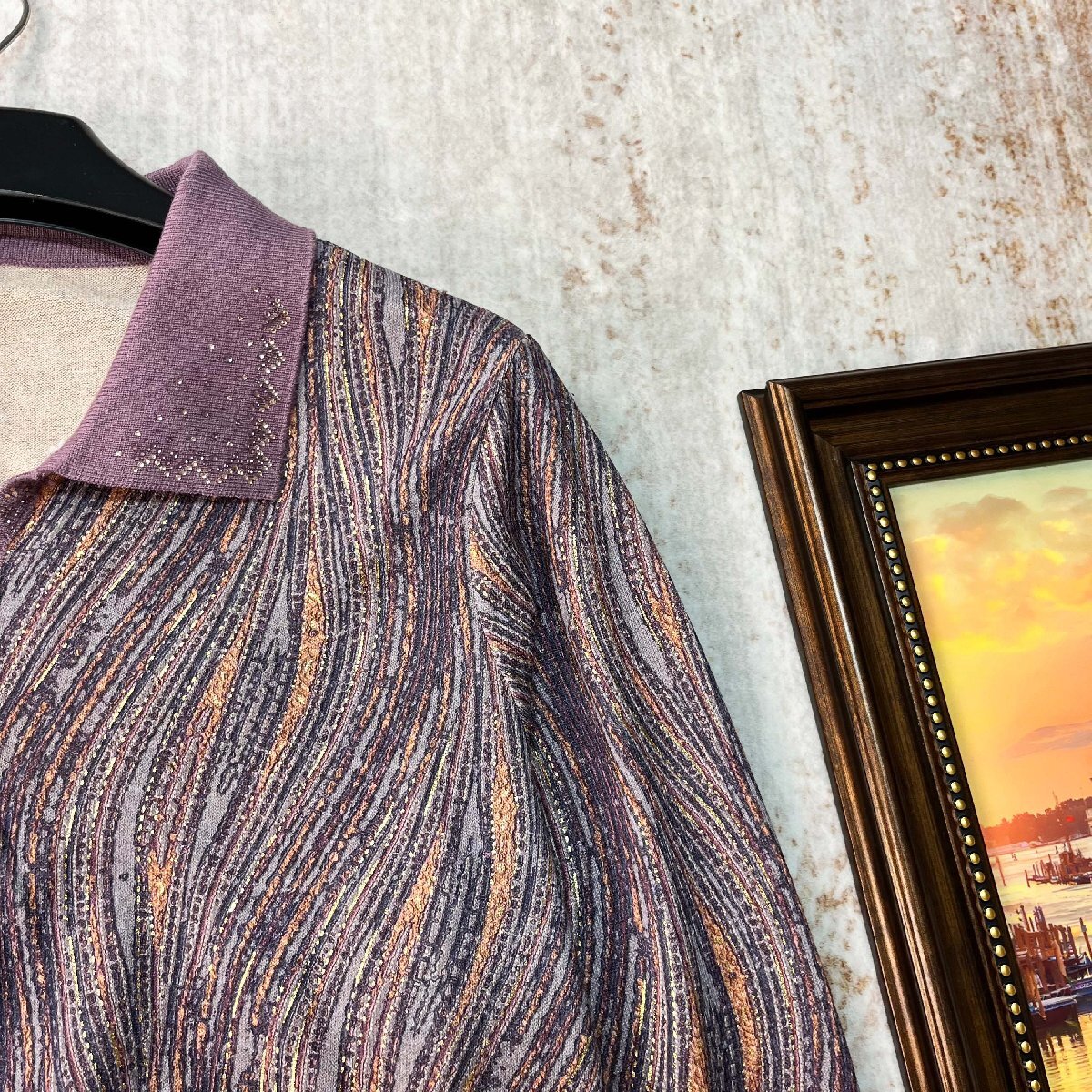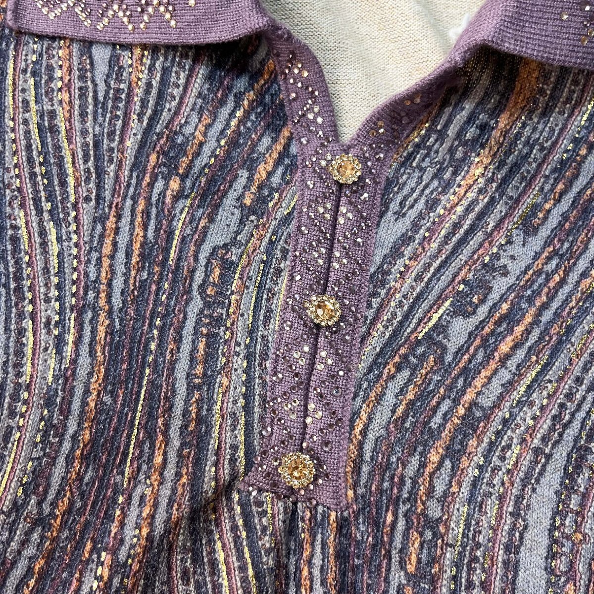 一枚限定 セーター ロンドン製造 ウール混 快適 柔らかい 総柄 キラキラ 折り襟 ニット 個性 トップス トレーナー レディース 春秋 SIZE:L