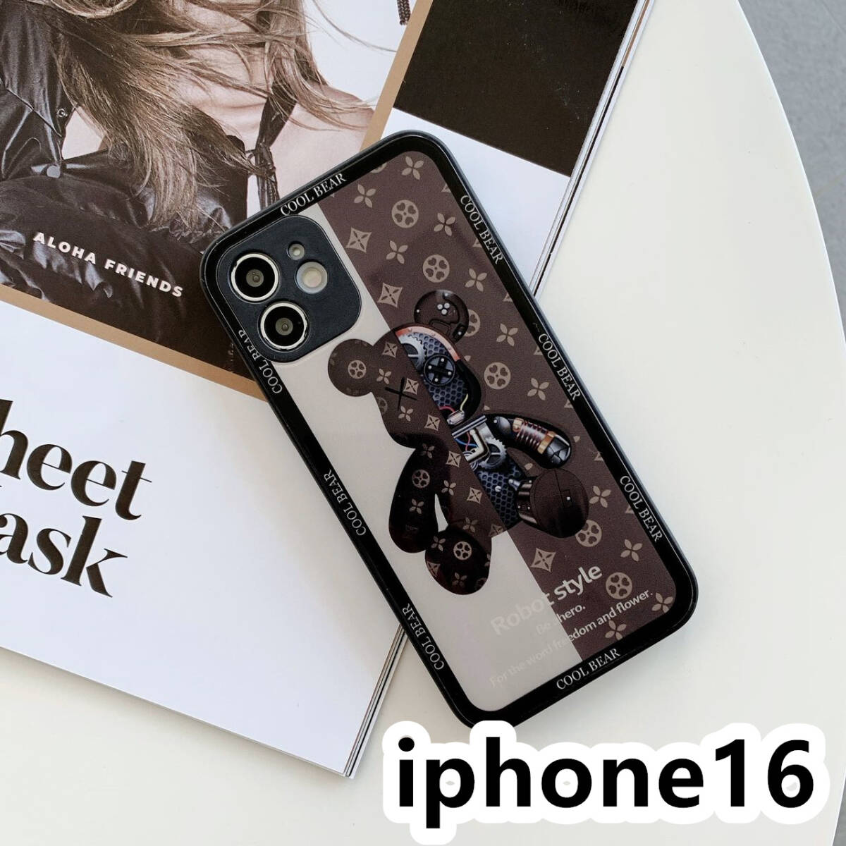 iphone16ケース カーバー TPU 可愛い 熊 ガラス お洒落 軽量 ケース 耐衝撃高品質ブラウン
