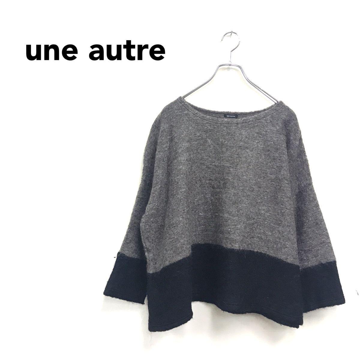 2O3271-G◆ une autre ユノートル メルベイユアッシュ ウールブレンドバイカラーニット セーター ボートネック ◆ ブラウン 黒 アクリル