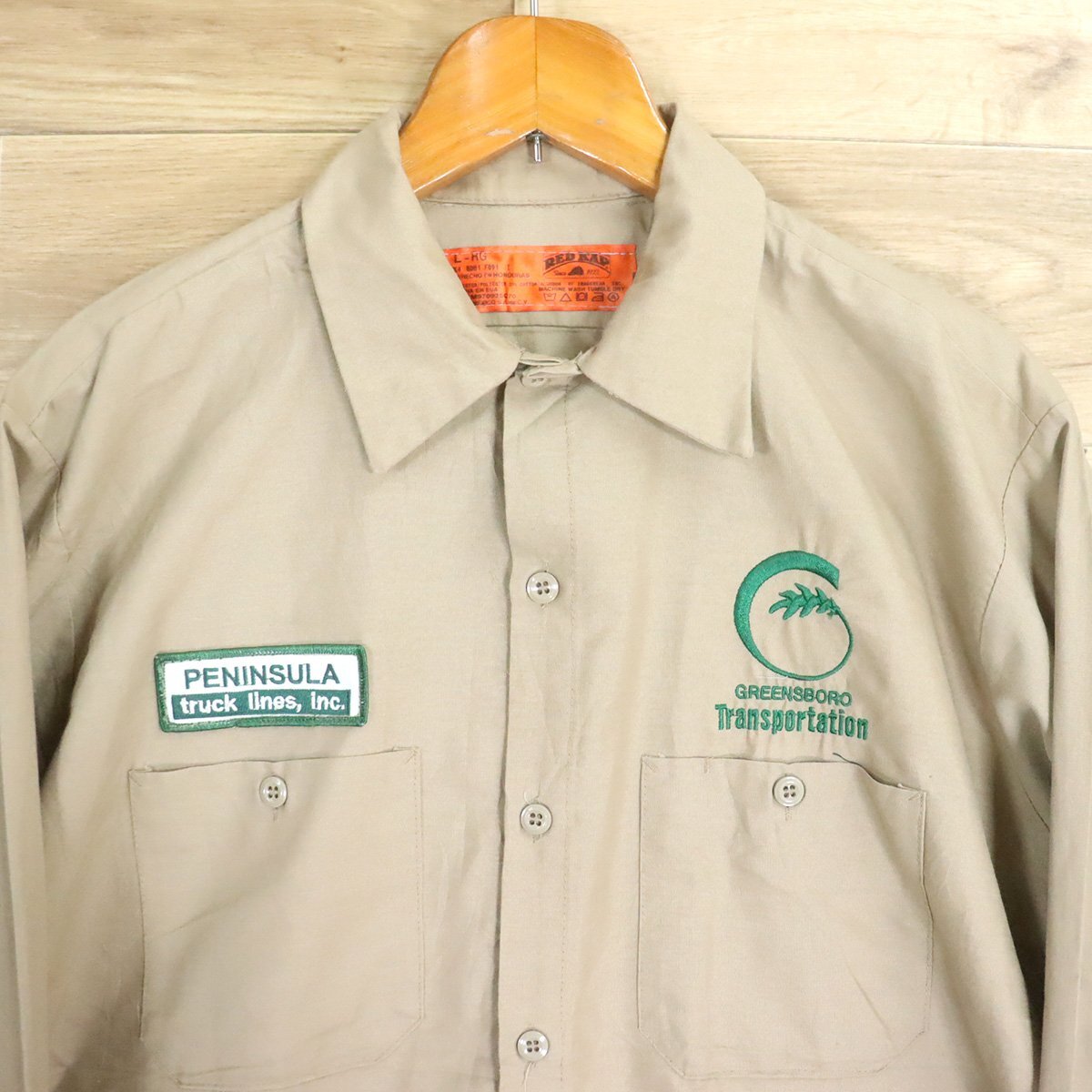 W3T/D10.30-1 アメリカ古着 RED KAP レッドキャップ ワークシャツ L ワッペン バック刺繍 文字 MIDNIGHT HAMMER