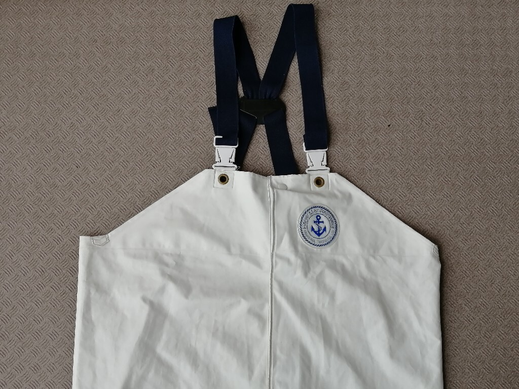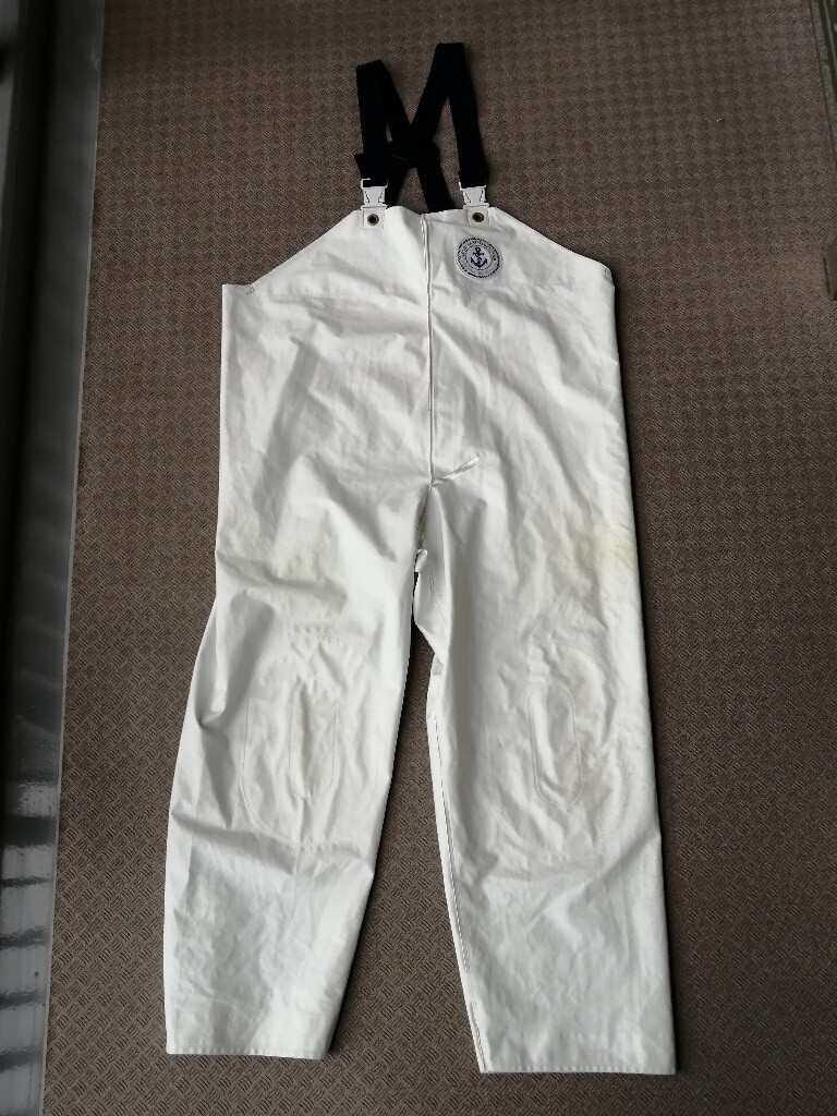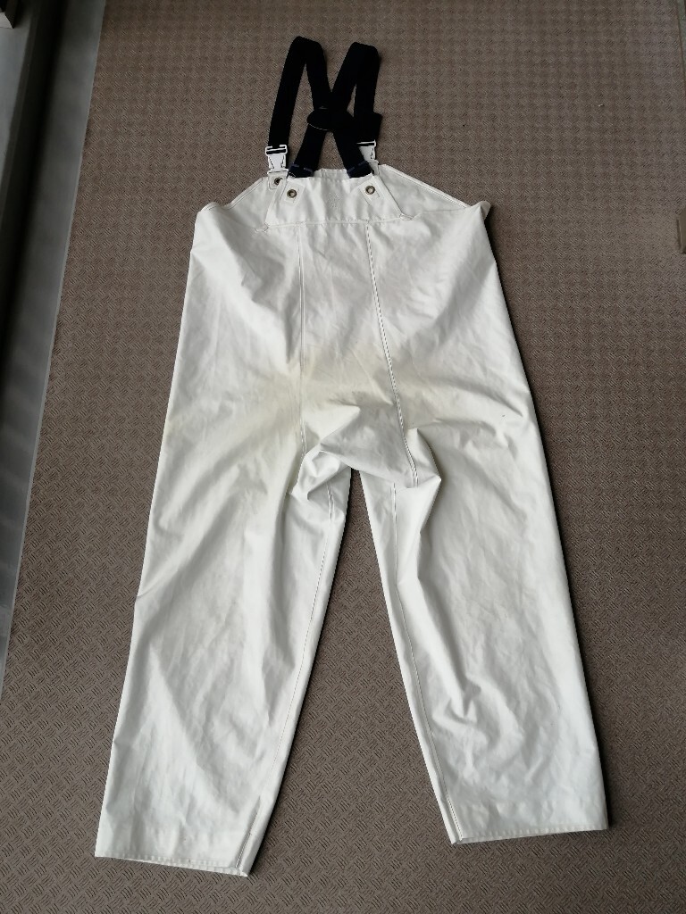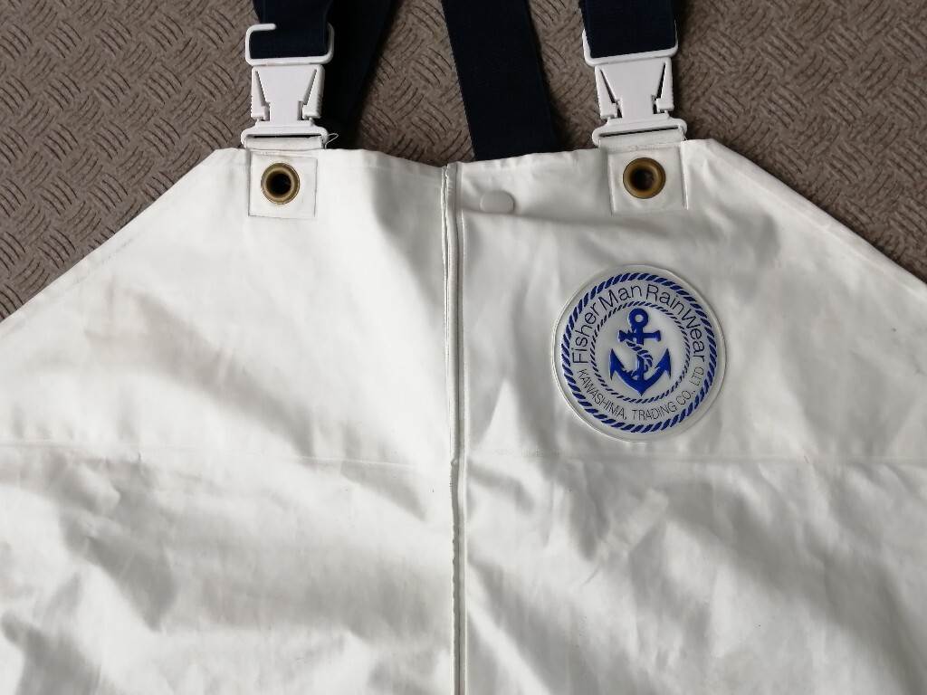 即決★クラフテル 3L 胸付ズボン 前開き 白 レインウェア 中古 サロペット 水産用 船釣り 漁師 合羽 カッパ レインウェアー レインウエアー