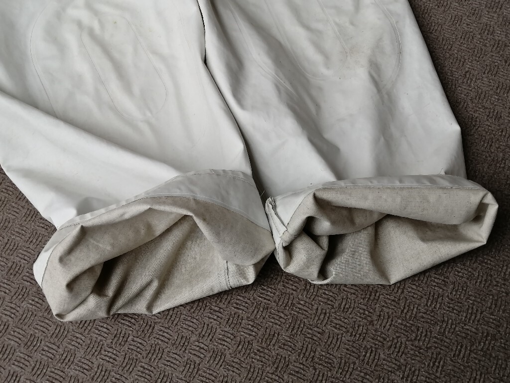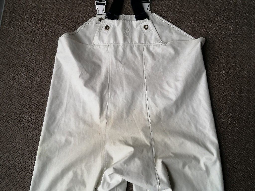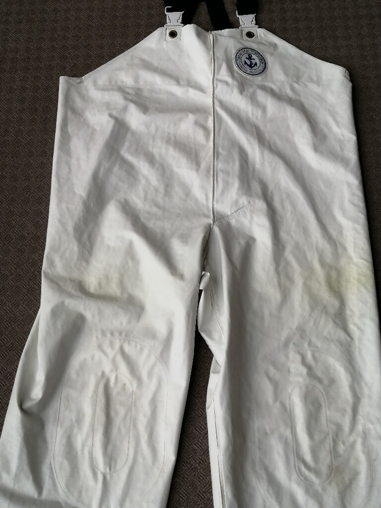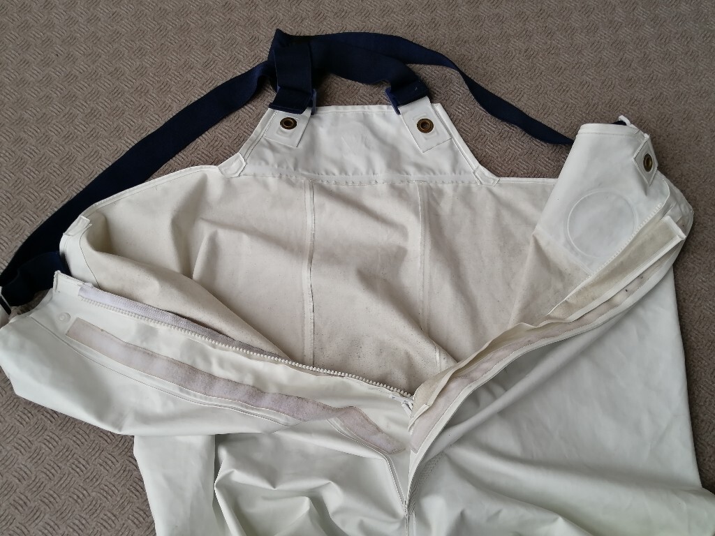 即決★クラフテル 3L 胸付ズボン 前開き 白 レインウェア 中古 サロペット 水産用 船釣り 漁師 合羽 カッパ レインウェアー レインウエアー