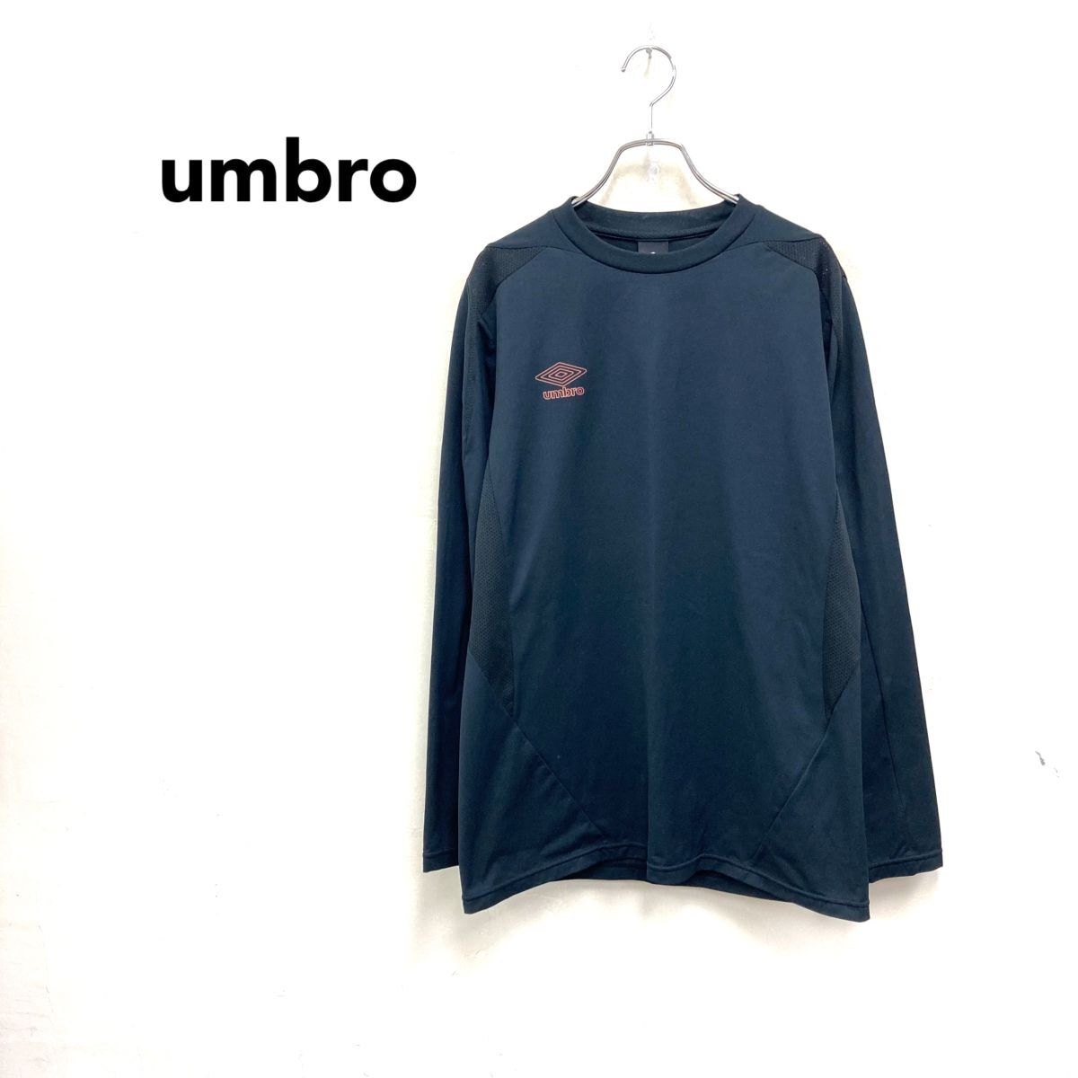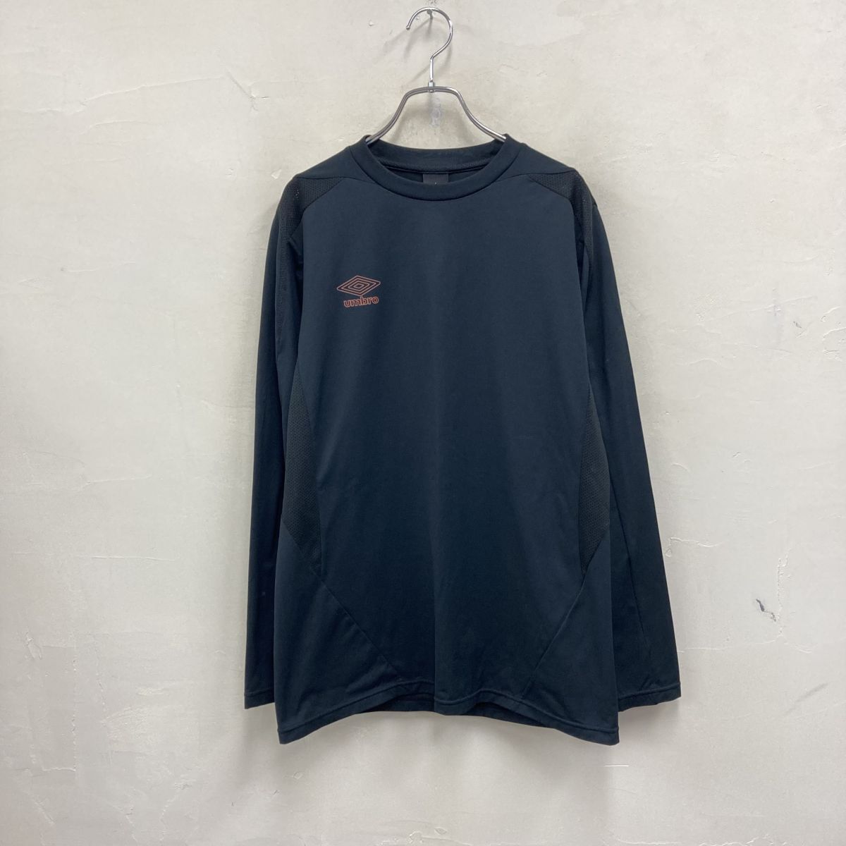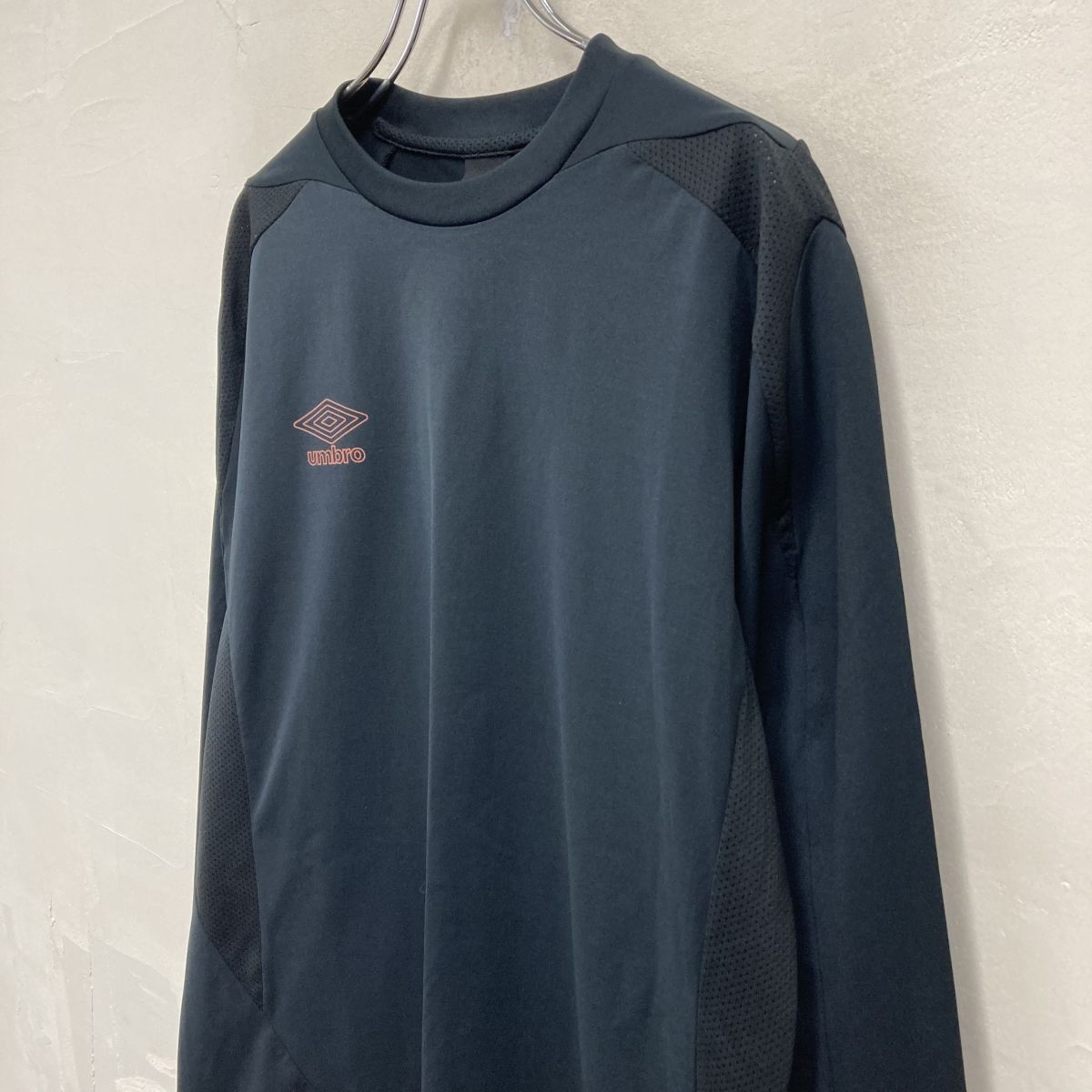 2O3347-Y◆umbro アンブロ 長袖Tシャツ ロンT クルーネック メッシュ切り替え スポーツ トレーニング メンズ◆sizeL ブラック ポリエステル