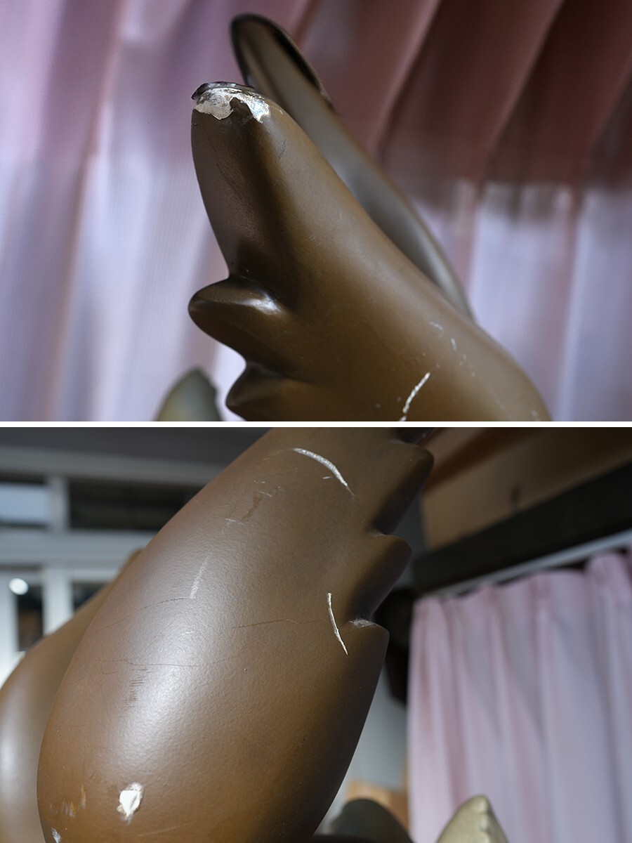 特大のフィギア模型です。 金属製の椅子に座っています。(写真参照) ※フィギアと椅子は分離します。 外観には経年による変色、傷、汚れ、劣化が 随所に見られますが 目立つ穴、割れ、変形などは見られません。 ■サイズ:W800mm×H1730mm×D750mm (椅子含む) ※重量は30kg以上あります。(いずれもおよそ) ◎状態については写真でよくご確認のうえ ご入札ください。(返品不可) ※写真にあるものがすべてです。 土日は営業時間外ですのでご質問は平日にお願いします。 (返答可能時間 月~金曜日 10:00~17:00) ※いたずら目的の入札や落札後にお取引を放棄する 無責任な行為を防止するため 誠に不本意ではありますが、 新規IDおよび悪い評価が複数回ある方の ご入札は当方により取り消しいたします。 あしからずご了承ください。 |