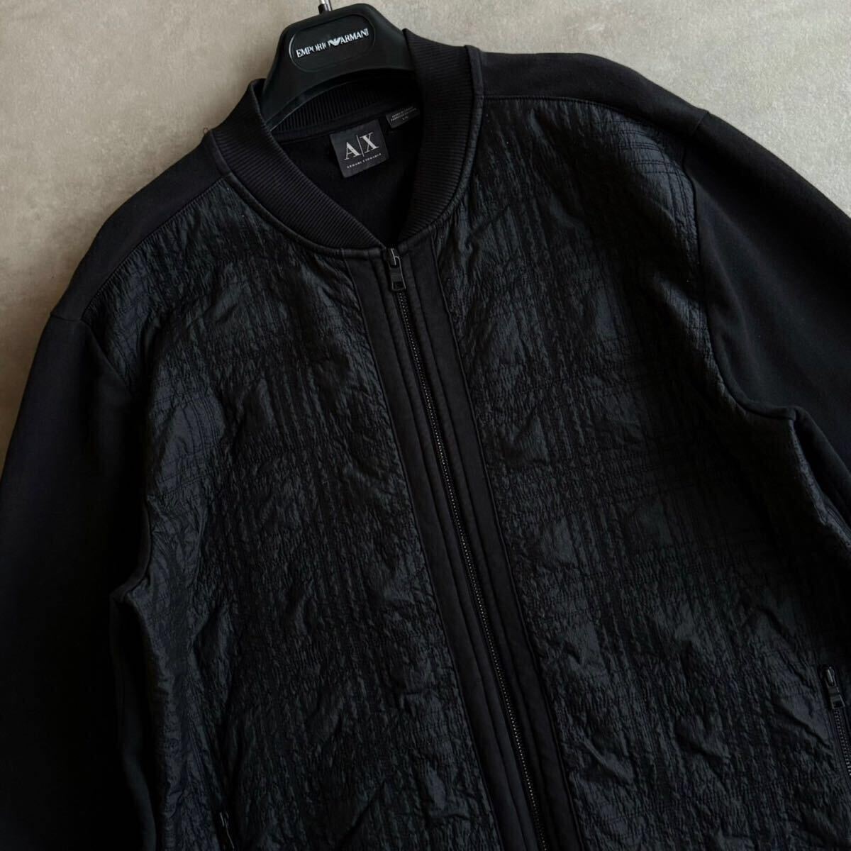 ARMANI EXCHANGE(アルマーニ エクスチェンジ)が提案する、都会的で洗練された雰囲気漂うハイブリッドブルゾン。フロントには上品な光沢を持つナイロンキルティングパネル、袖と背面には柔らかなコットン素材を組み合わせた、異素材切替のスタイリッシュなデザインが目を惹きます。